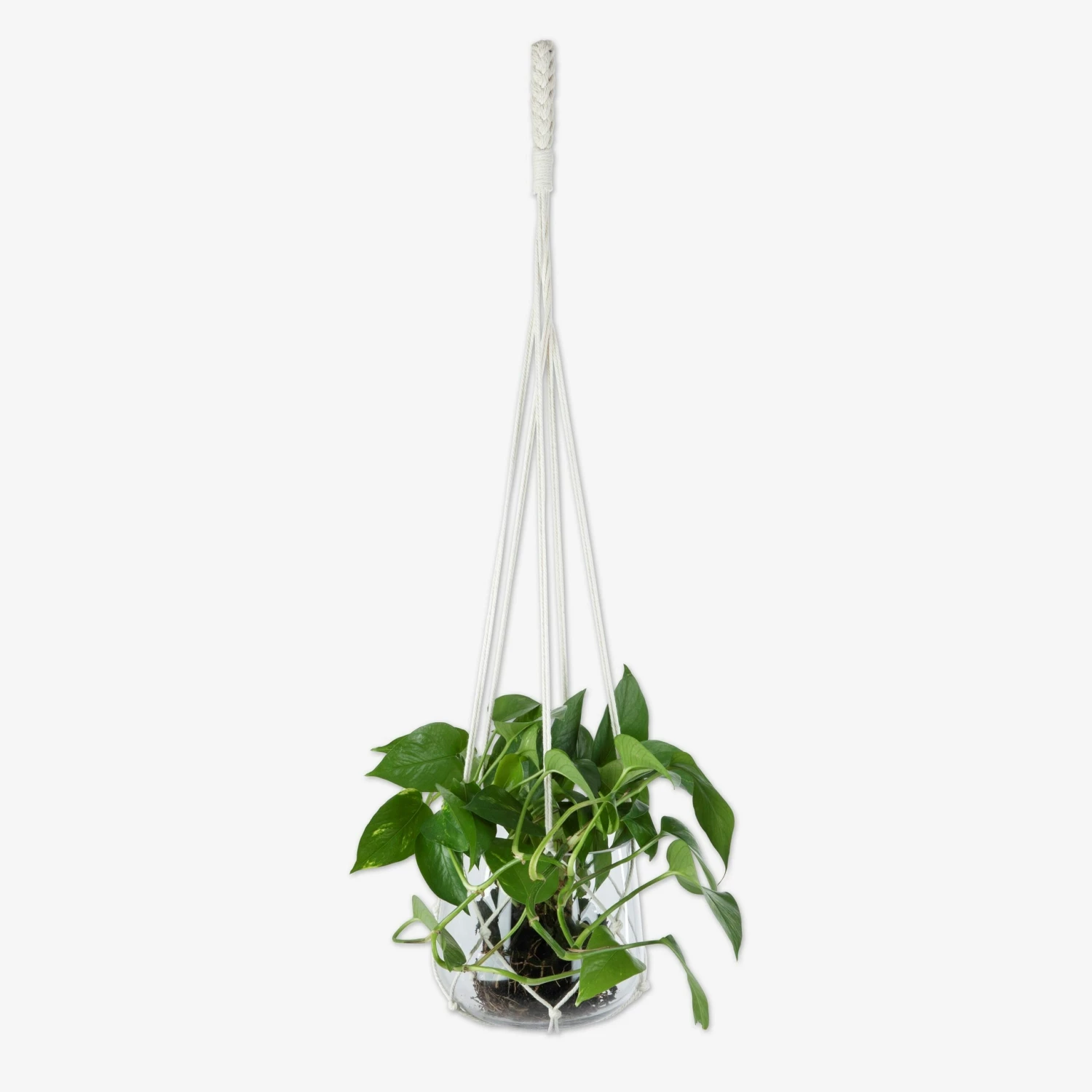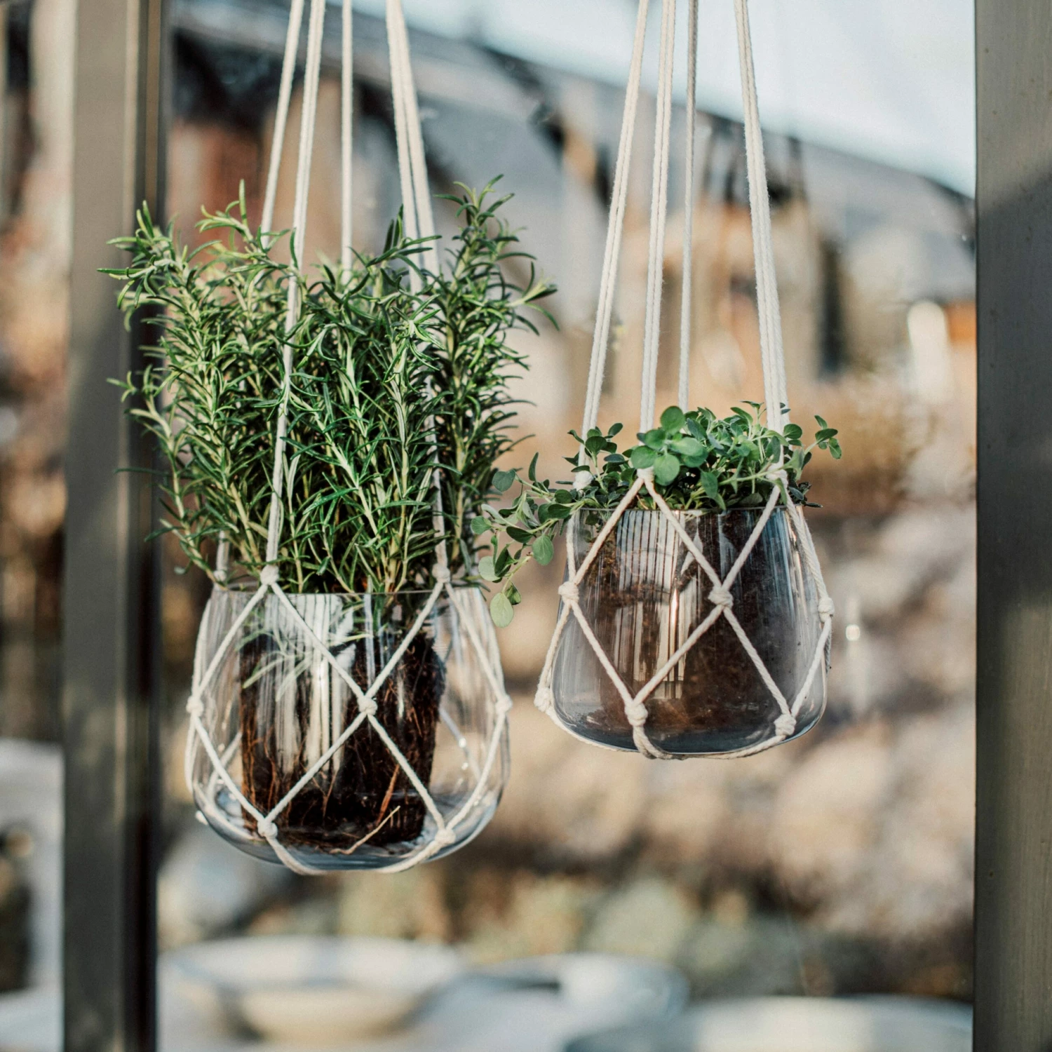 | Schöne Ampel, mit der du deine Blumen platzsparend über der Fensterbank aufhängen kannst. In verschiedenen Größen und Höhen erhältlich. Ampel aus Baumwolle, inklusive Glastopf.Maße: H 15 cm Ø 17,5 cm. Die Gesamtlänge der Ampel beträgt in aufgehängtem Zustand 71 cm. |