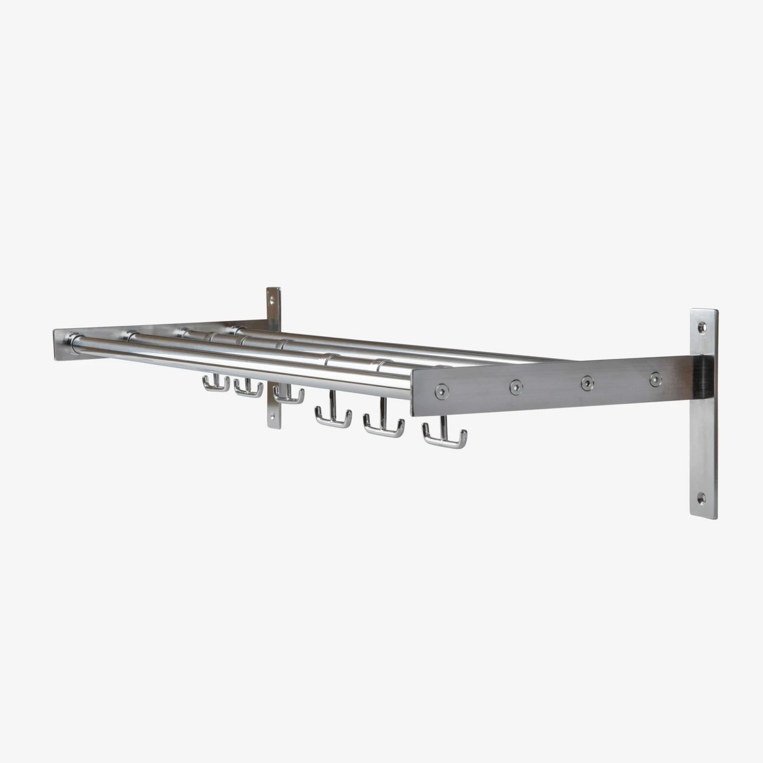 Haken für unser stilvolles Dielenregal aus Edelstahl. Diese Haken aus rostfreiem Stahl werden im 5er-Pack geliefert und können zusammen mit unserer Hutablage zum Aufhängen von Oberbekleidung und unserem Wandaufhänger zum Aufhängen von Scheren, Messgeräten oder anderen Küchenutensilien verwendet werden, die man z. B. beim Kochen oder Backen in der Nähe haben möchte.