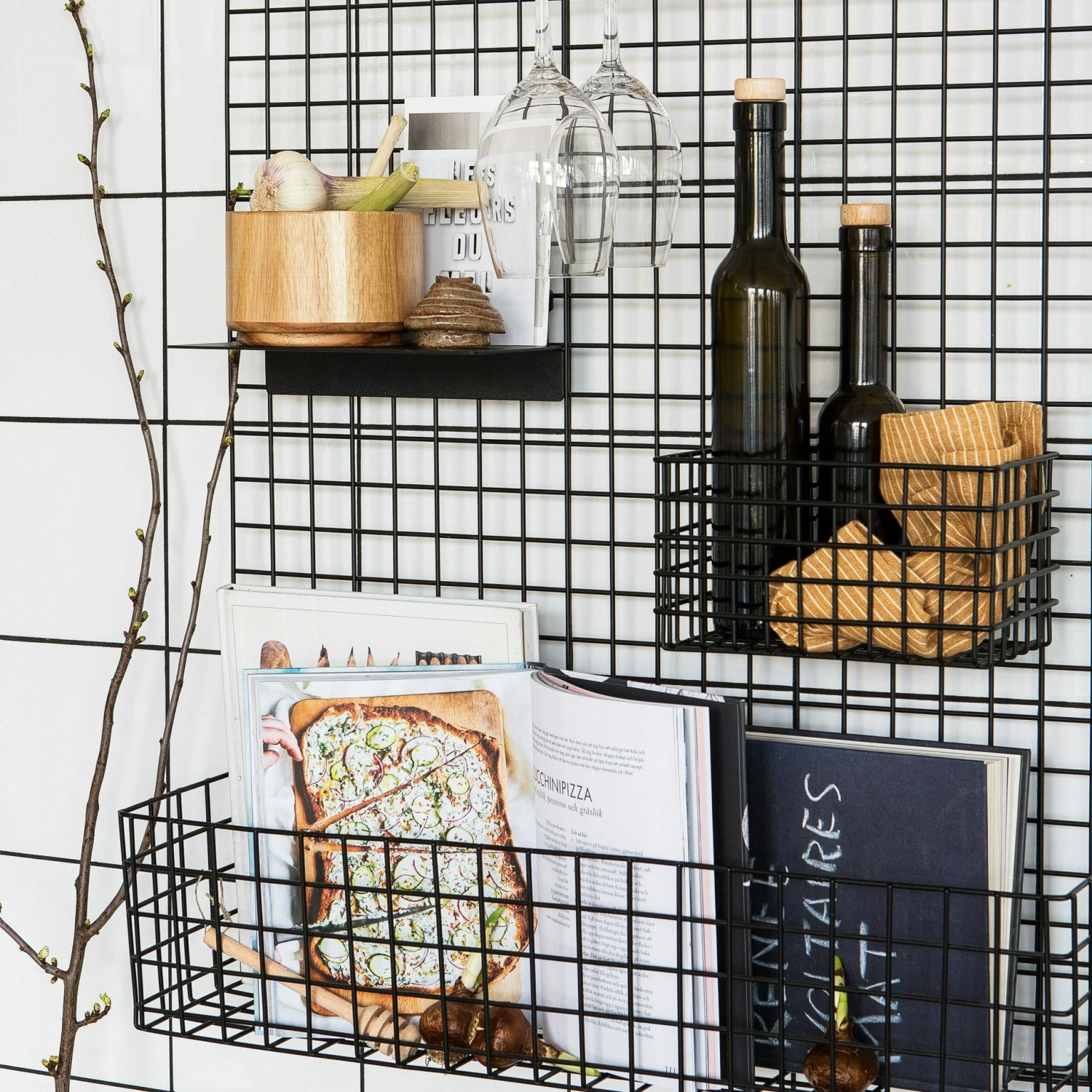 Aufbewahrungstafel, die deine Wand zu einer flexiblen und multifunktionalen Aufbewahrungsfläche verwandelt. In der Küche, im Flur, im Büro oder ganz einfach überall, wo du eine Fläche benötigst, die mehr ist als ein paar Haken. Ergänze das Gitter nach Belieben mit unseren S-Haken, Magneten und dazugehörigen Körben. Schrauben zur Befestigung sind nicht im Lieferumfang enthalten.