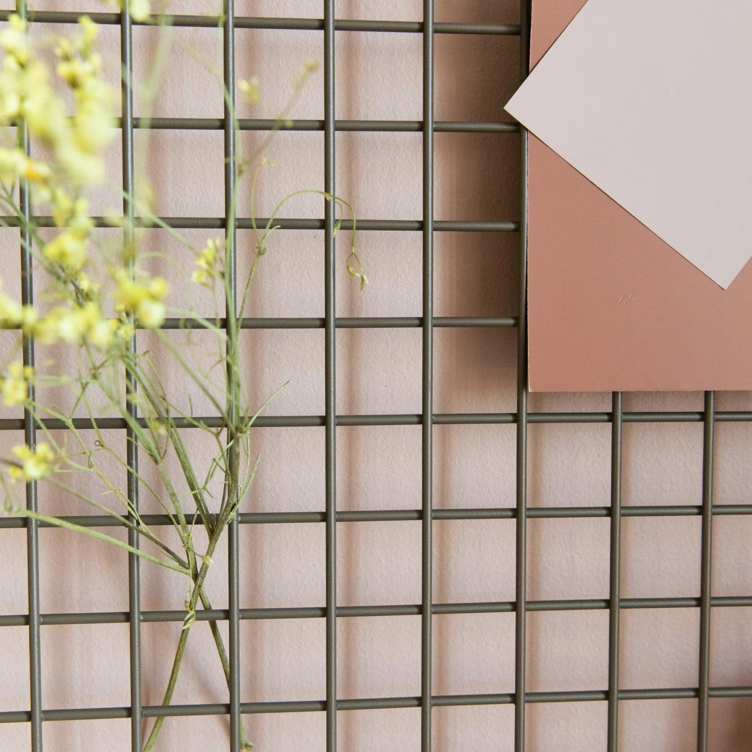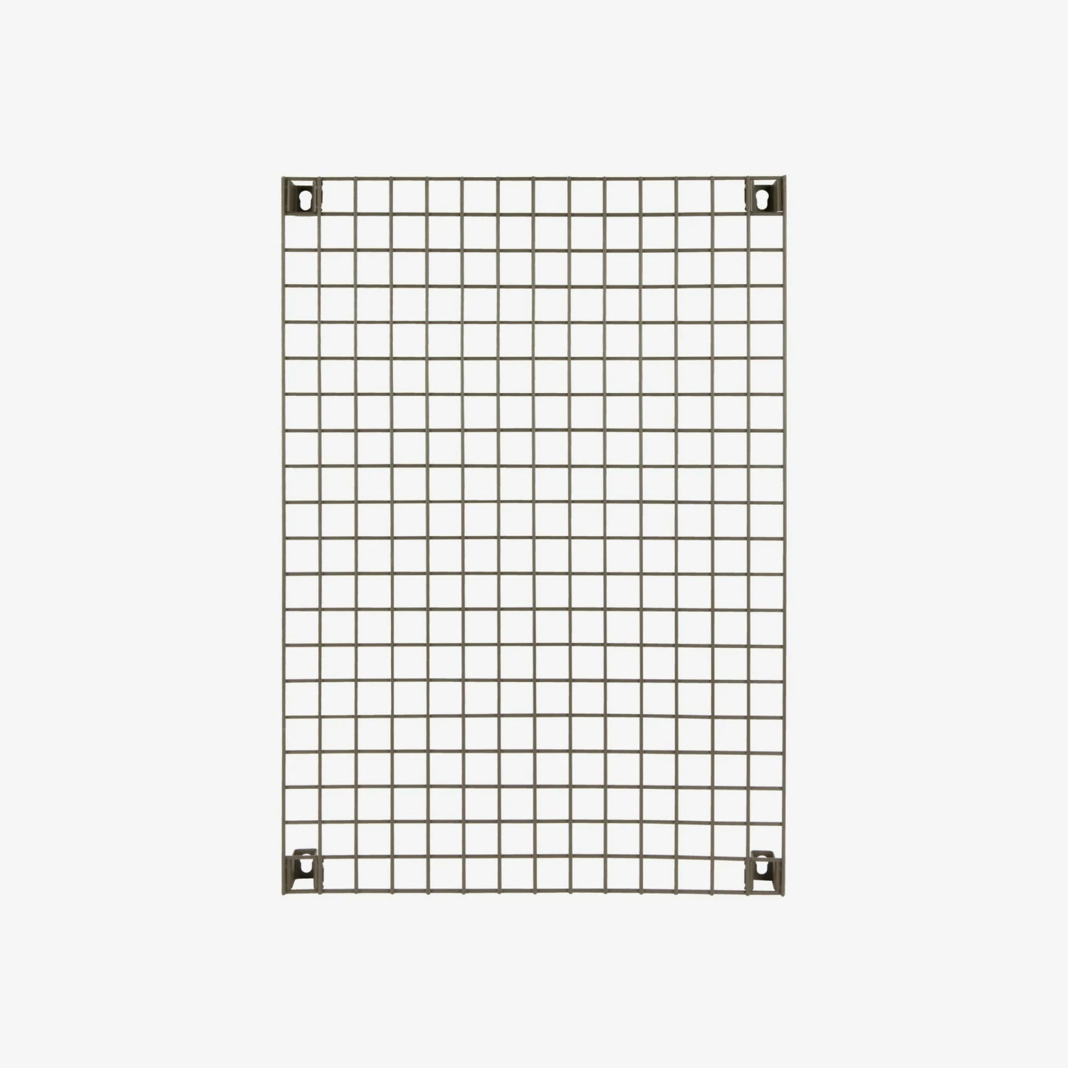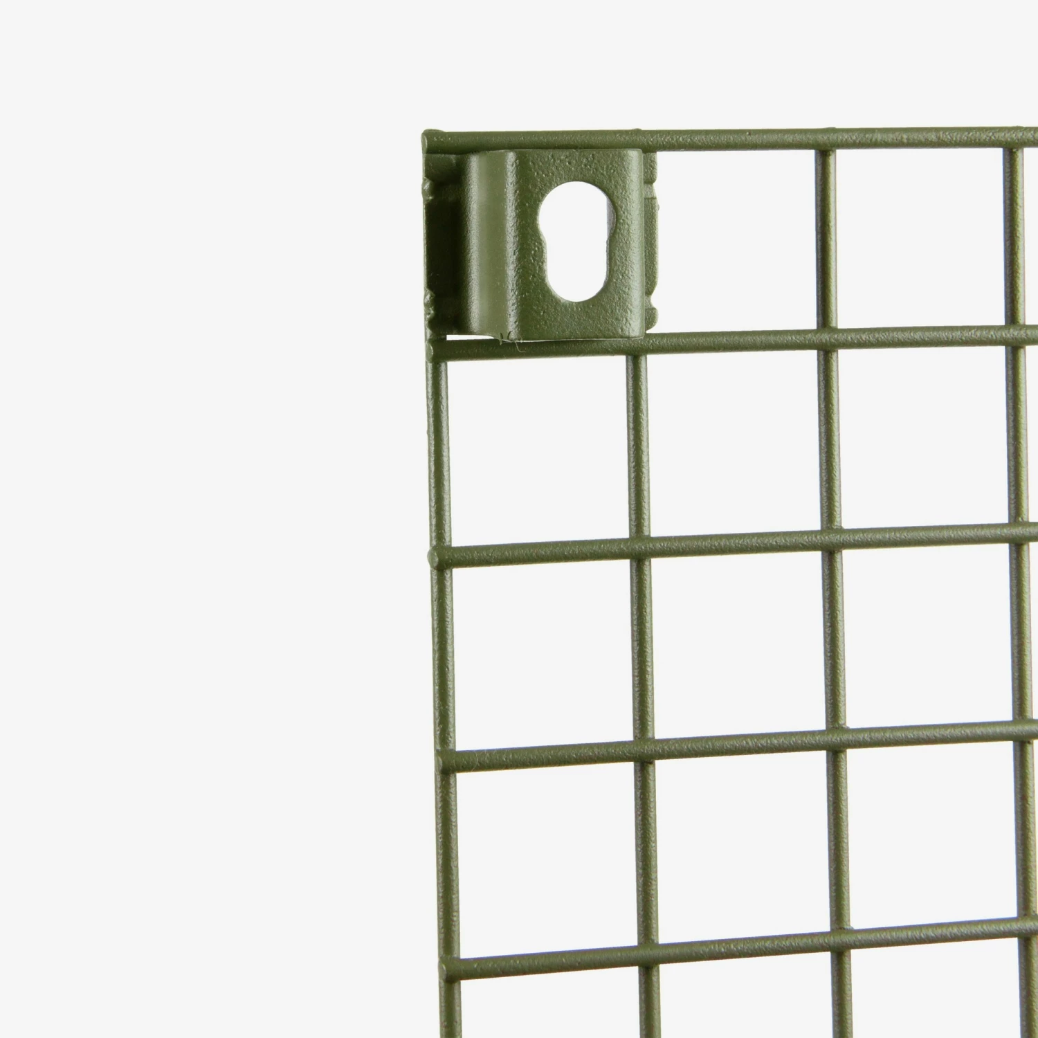 Grüne Aufbewahrungstafel mit Gitternetz aus pulverbeschichtetem Metall.