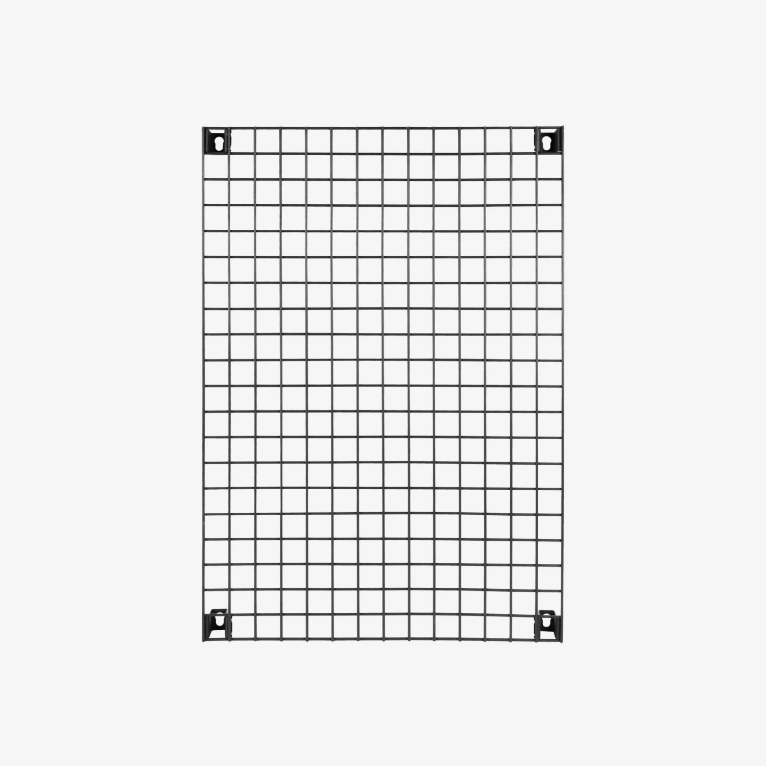 Schwarze Aufbewahrungstafel mit Gitternetz aus pulverbeschichtetem Metall. Bringe eine oder mehrere nebeneinander an und kombiniere sie mit unseren Regalen, Körben, praktischen Magneten und Haken. Auch in zwei anderen Farben erhältlich.