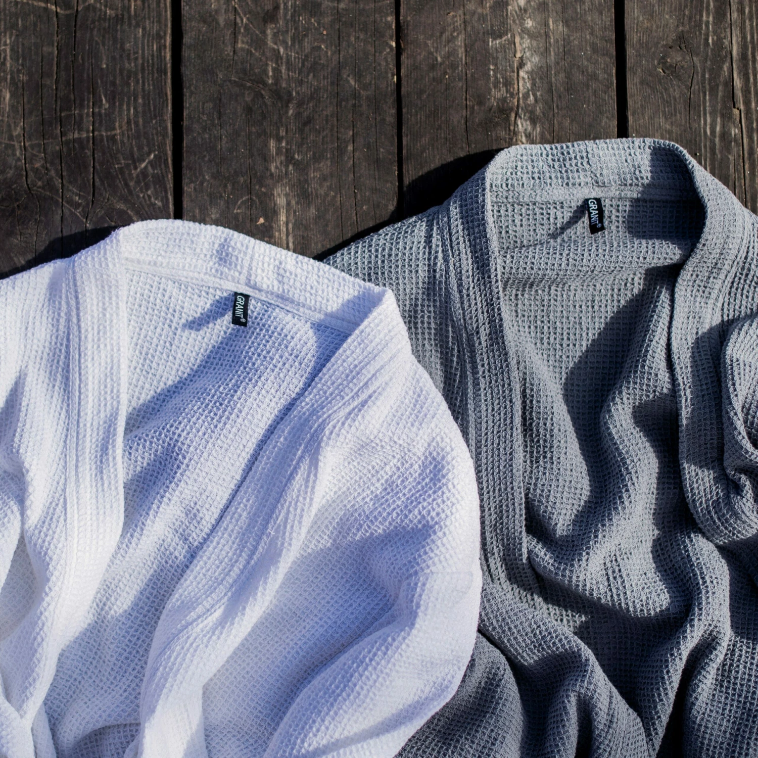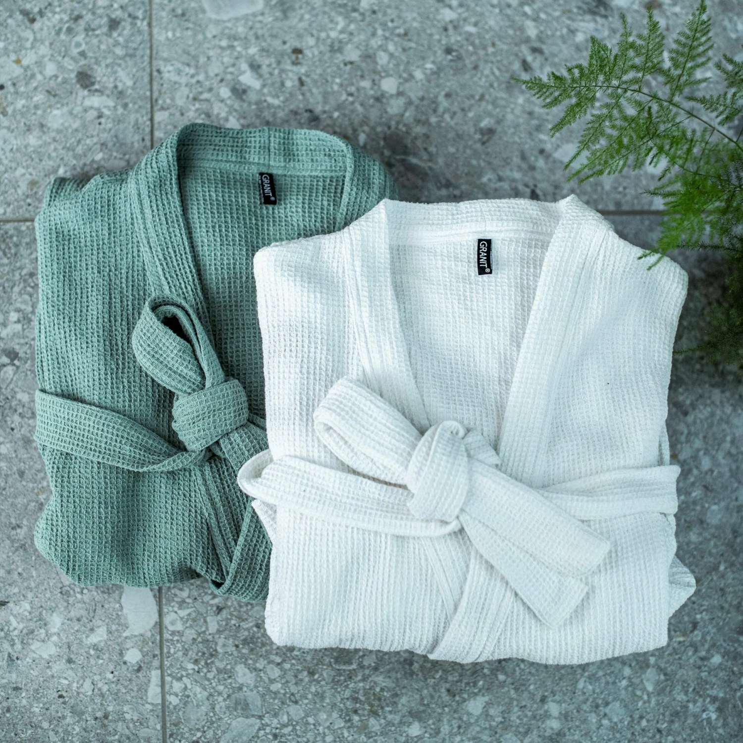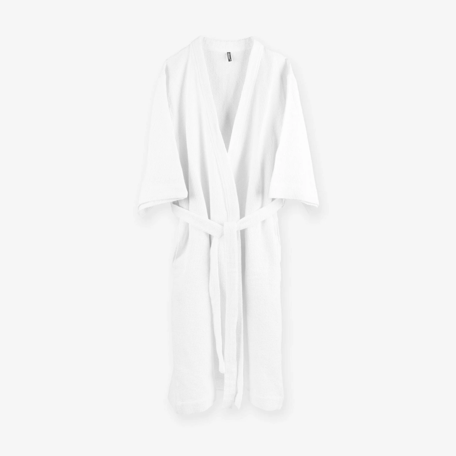 Ein weicher und schöner Morgenmantel aus einer leichten Baumwollqualität mit Waffelstruktur. Die Baumwolle ist biologisch und nach GOTS (Global Organic Textile Standard) zertifiziert, der strengsten Zertifizierung für biologische Materialien auf dem Markt, die sowohl soziale als auch ökologische Anforderungen umfasst. Die Größe des Morgenmantels wurde verbessert, damit er mehr Menschen passt. Eine Größe für alle.