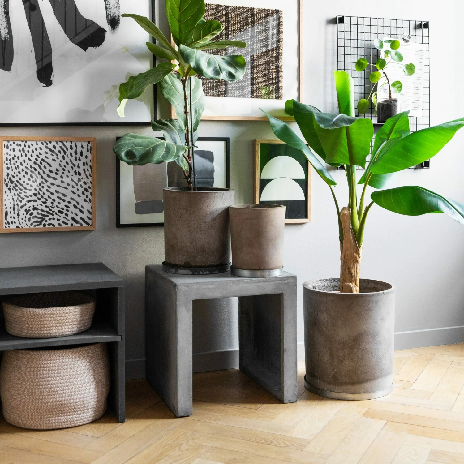 Blumentopf aus Beton und Glasfaser für eine Bepflanzung drinnen oder draußen.