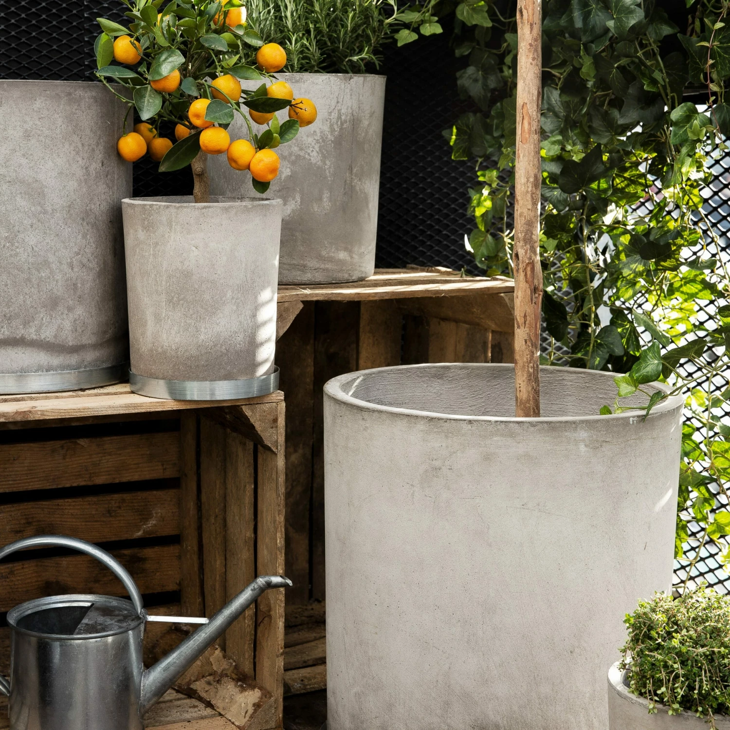 Blumentopf aus Beton und Glasfaser für eine Bepflanzung drinnen oder draußen.