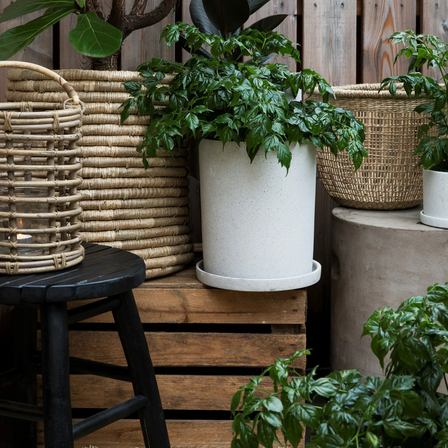 Lass deine Pflanzen sprießen in unseren frostbeständigen, zylinderförmigen Blumentöpfen mit Untersetzer aus Polystone. Kombiniere und gruppiere verschiedene Größen nach Belieben!