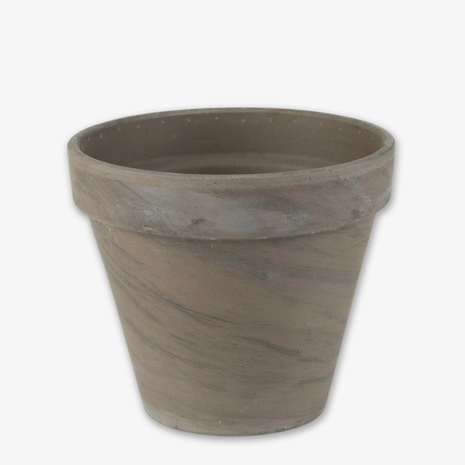 | Stilvoller grauer Terrakottatopf mit smartem Abflussloch am Boden. Der Topf ist handgefertigt, frostbeständig und hat einen passenden Untersetzer (Art. Nr. 401510). Der Topf ist in zwei Größen erhältlich. |