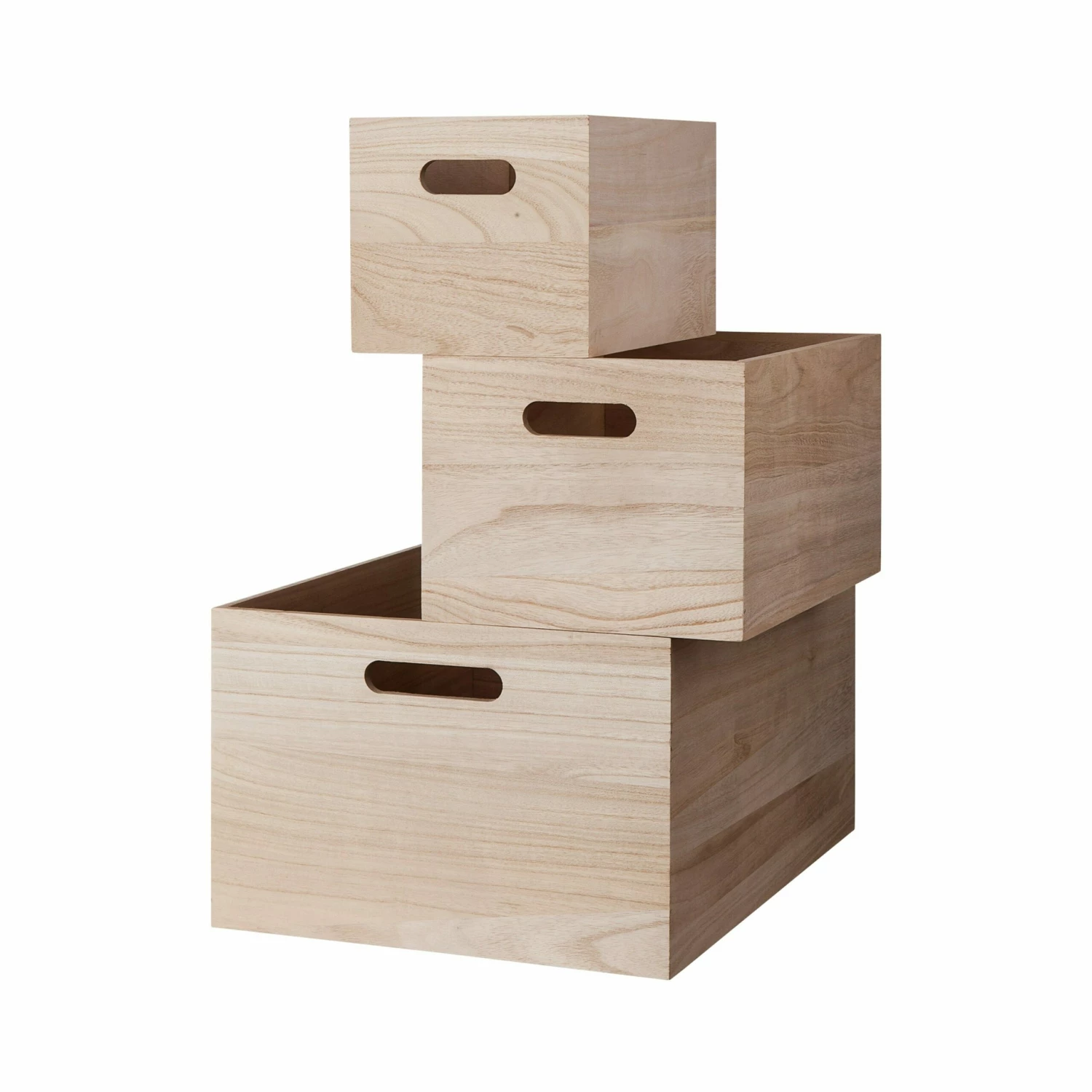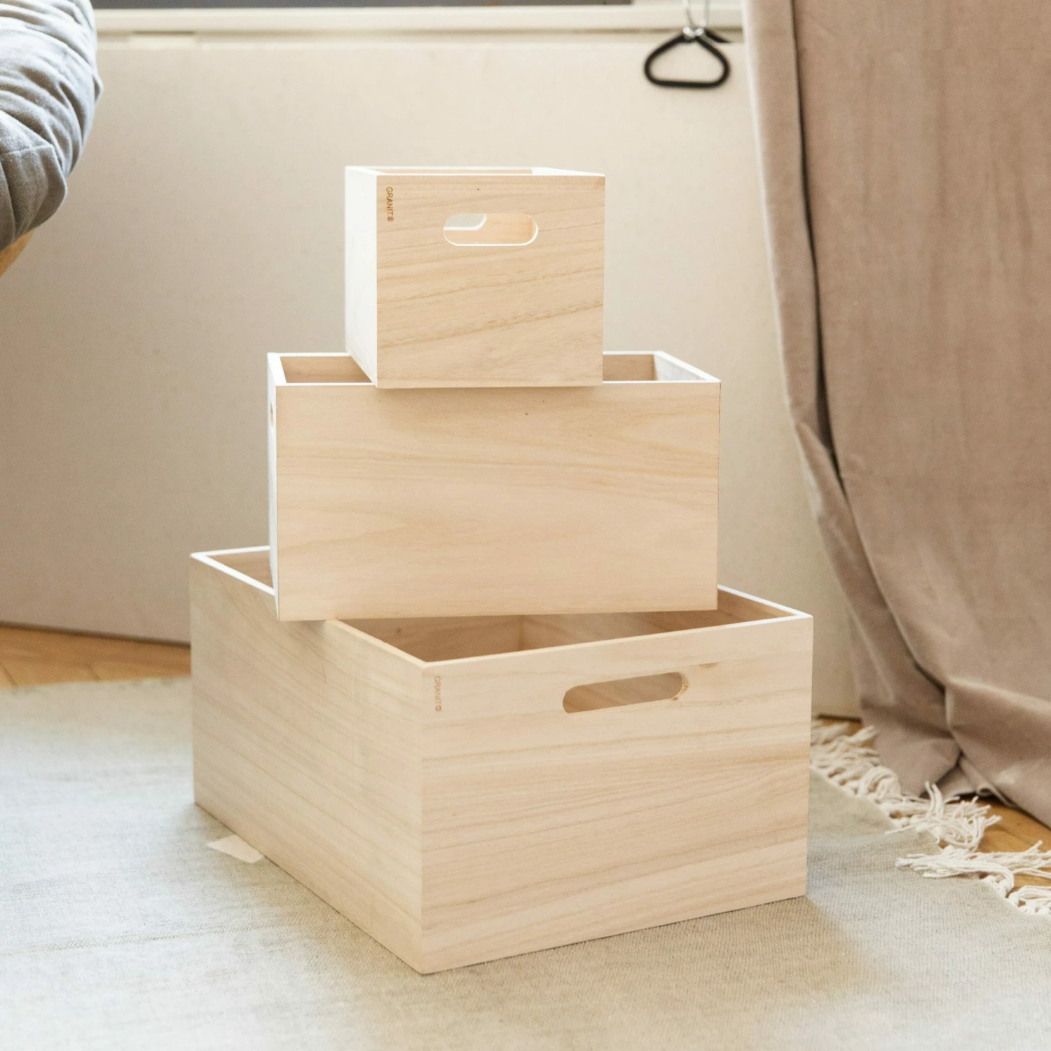 Holzkiste mit Griffen. Perfekt als Aufbewahrungsbox oder als Geschenkbox. Kann auch wunderbar bemalt oder mit dem guten alten Kartoffeldruck bedruckt werden! Die Box wird aus dem schnell wachsenden Paulownia-Holz hergestellt. Die ausgestanzten Griffe ermöglichen dir ein einfaches Handhaben der Kiste. Erhältlich in drei verschiedenen Größen.