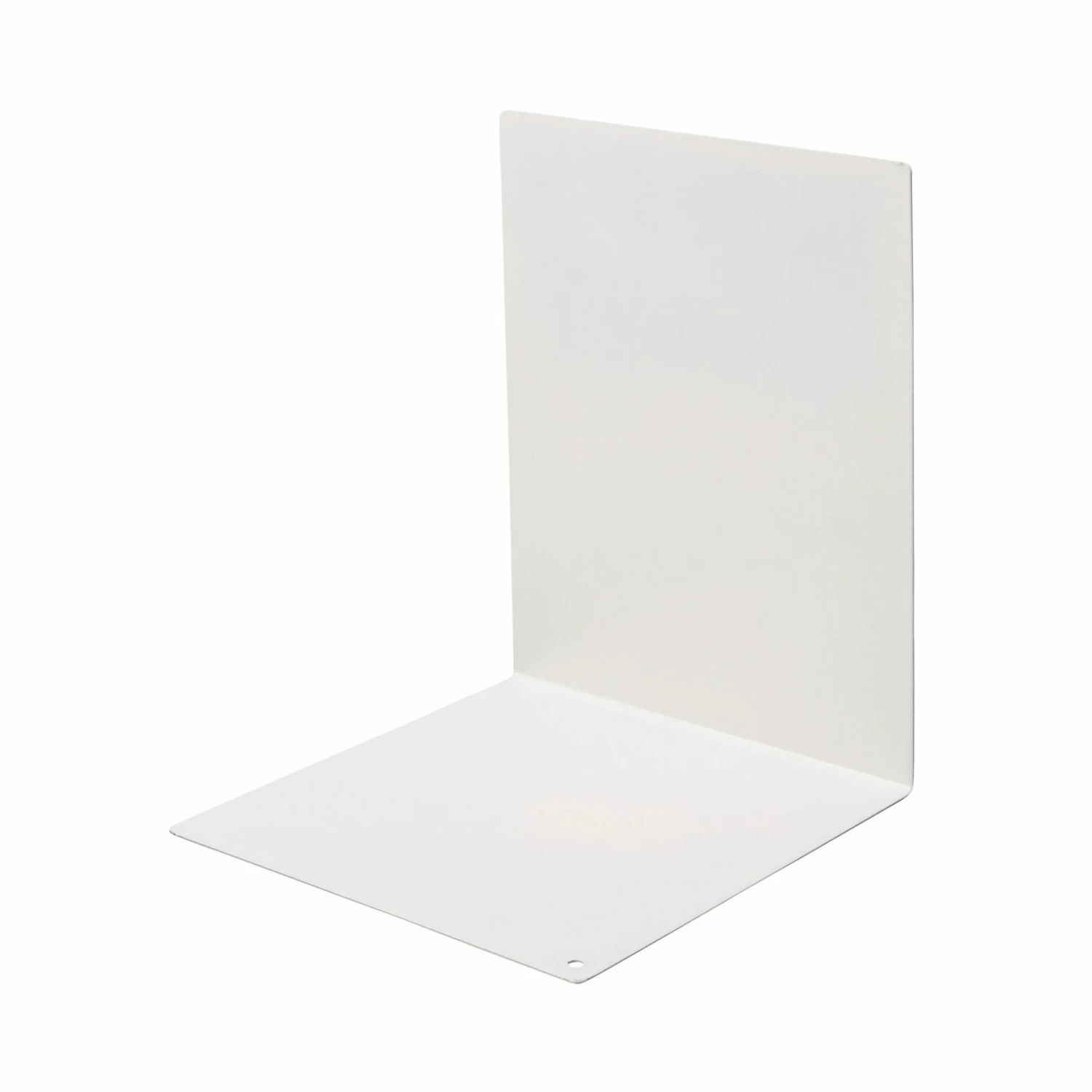 Praktische weiße Buchstütze aus dünnem pulverbeschichteten Metall.