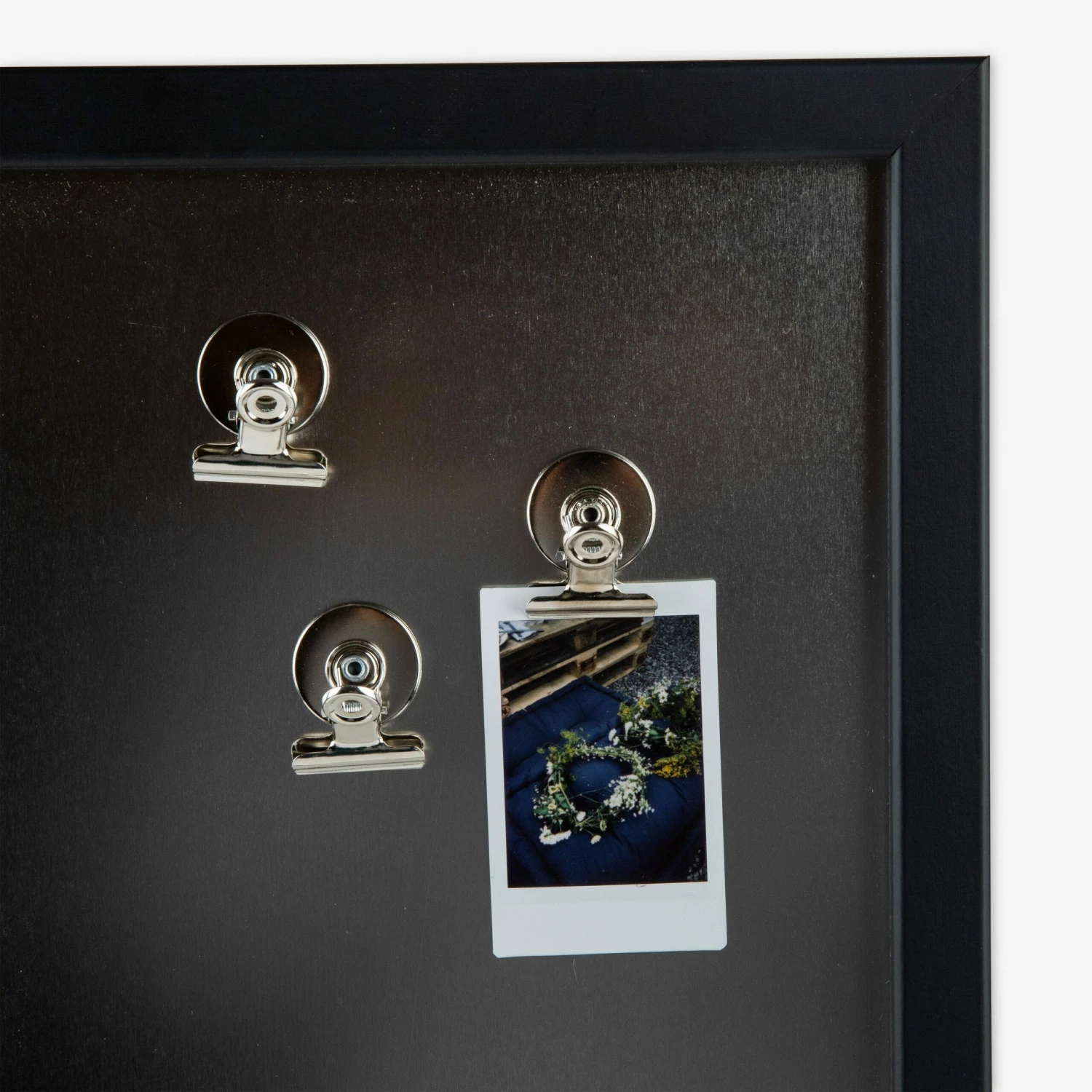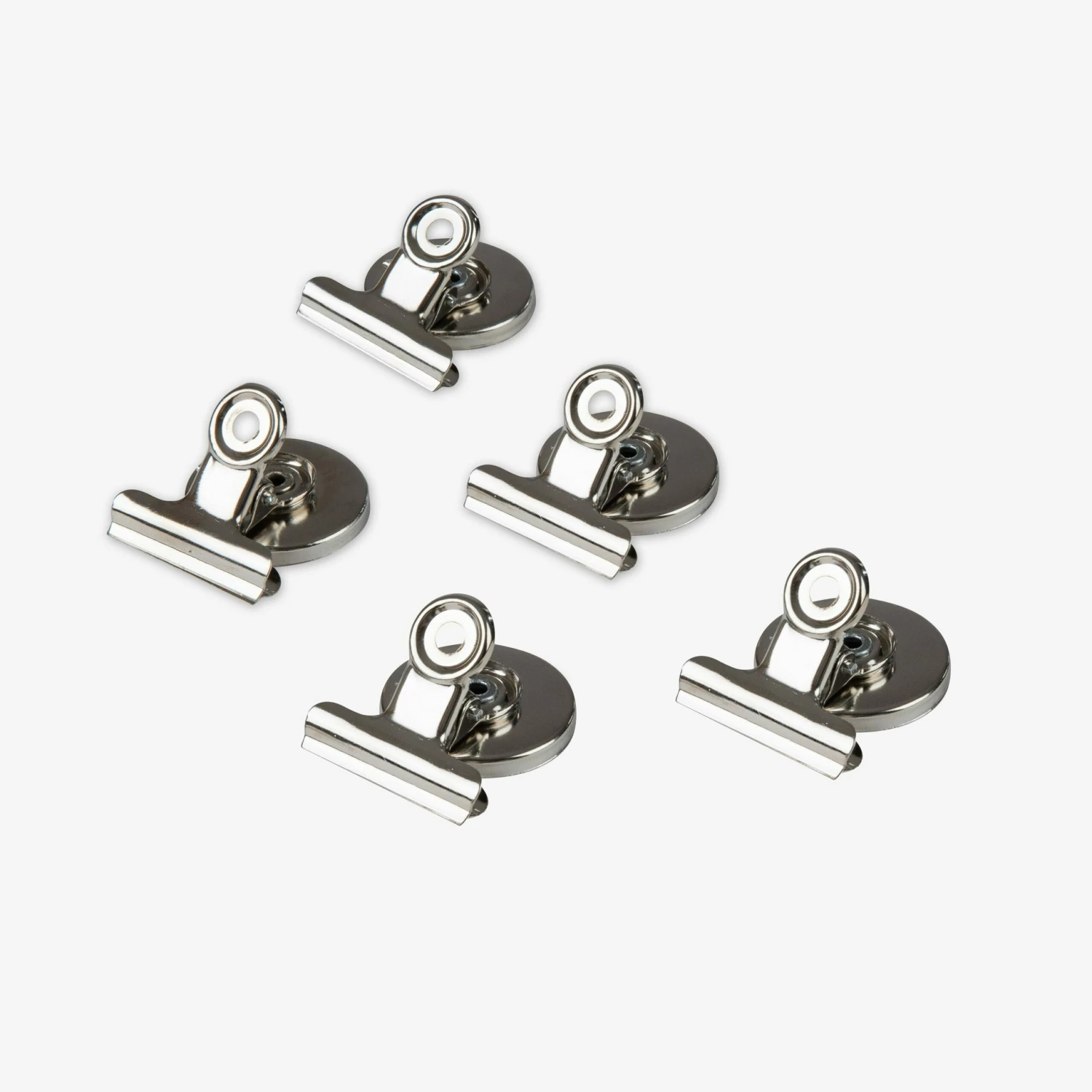 Smidiga klämmor i metall med en magnet på baksidan så att du kan hänga upp dina viktiga papper, vykort eller annat på alla magnetiska ytor. Klämman är stark nog att hålla uppe flera pappersark, vykort eller fotografier, en riktig storfavorit! Säljs i 5-pack. Material: Magnet (NdFeb) + Metal (Fe) Iron