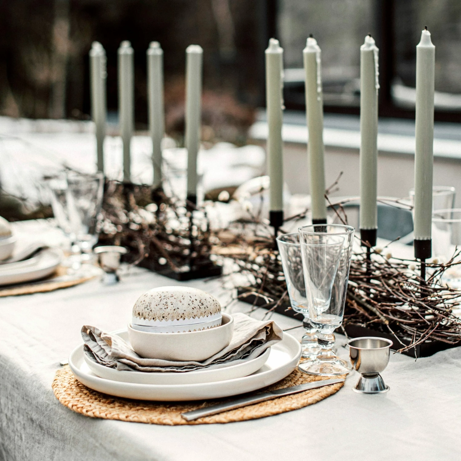 Candle of 100% stearin, labelled with thew Nordic Eco label. Does not contain palm oil. A smart environmental choice. A candle of stearin soots considerably less than other candles as it does not contain paraffin (i.e. oil) and when extinguished there is no afterglow or smoke.