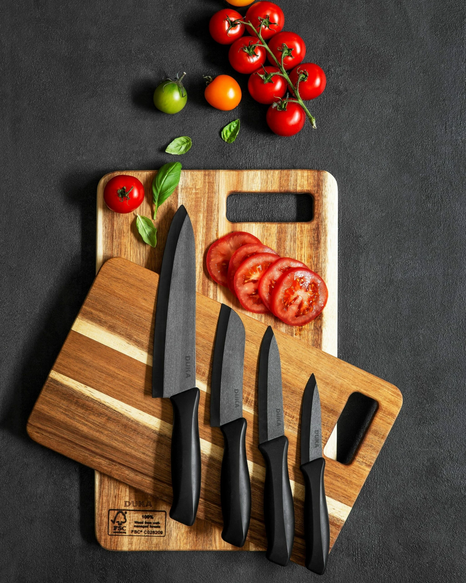 En rejält tilltagen skärbräda i oljebehandlat, FSC-certifierat akaciaträ. Diska din skärbräda för hand innan första användningen. Då trä är ett naturmaterial förekommer avvikelser i färg, varje skärbräda är unik i sitt slag. Det praktiska hålet upptill gör den lättare att bära och skärbrädan kan även hängas.