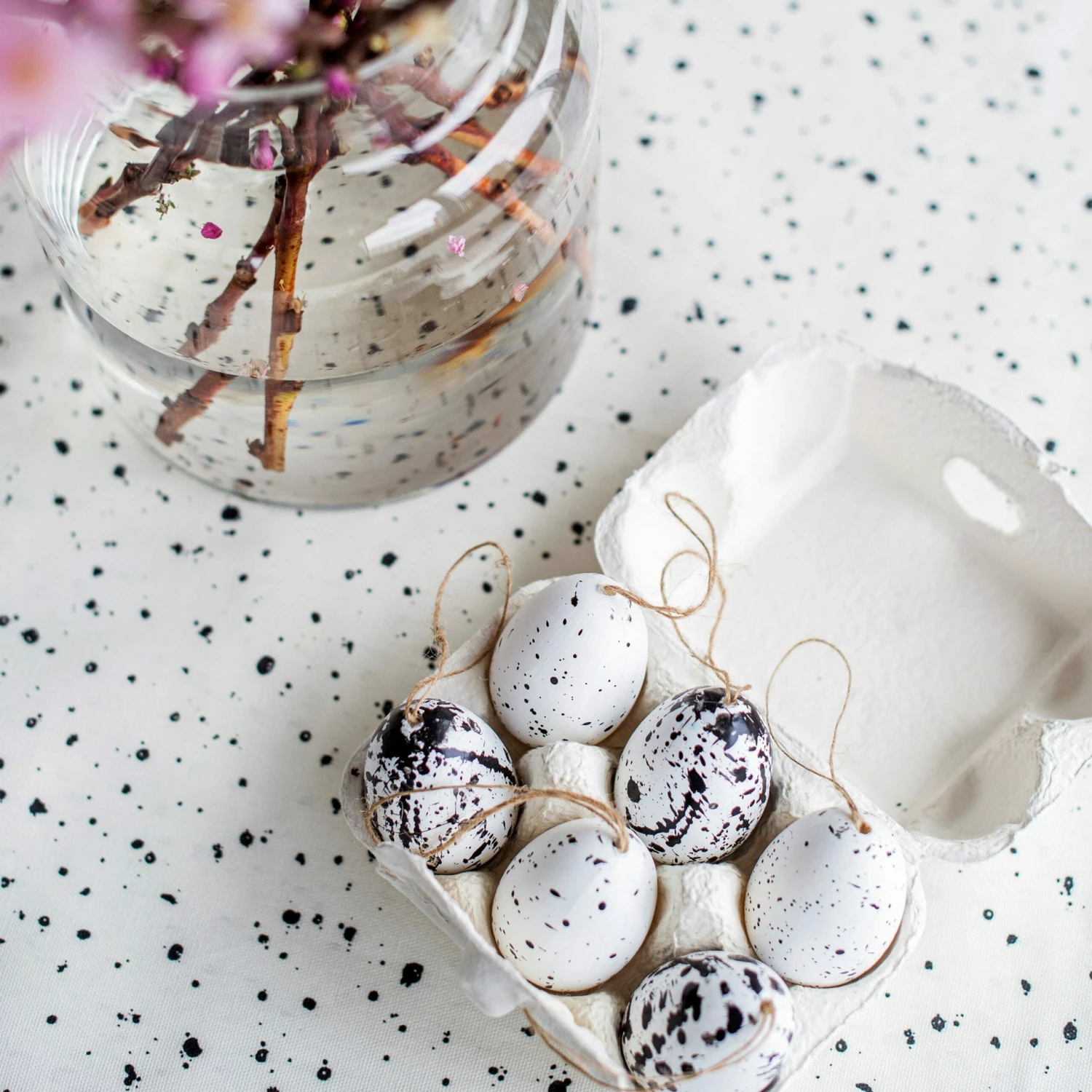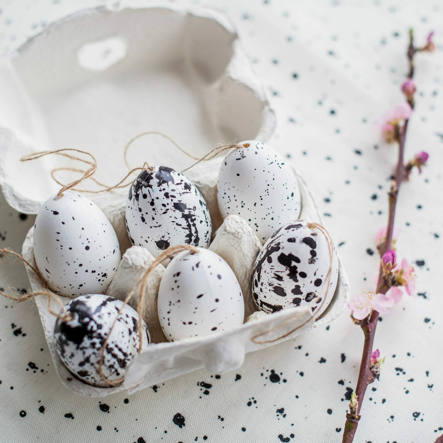 6 black and white eggs made out of polystyrene with a cardboard egg carton. Perfect for your Easter decorations!