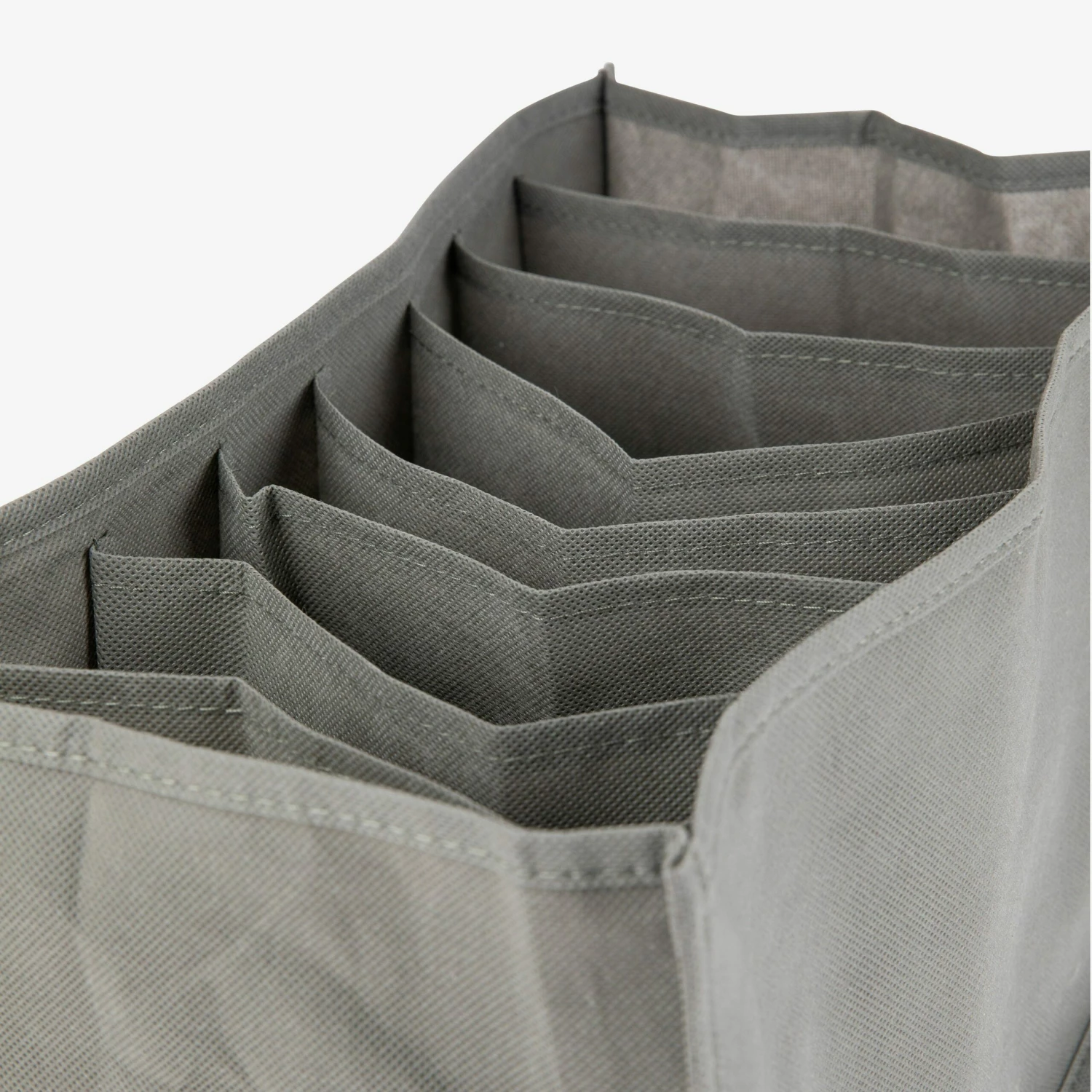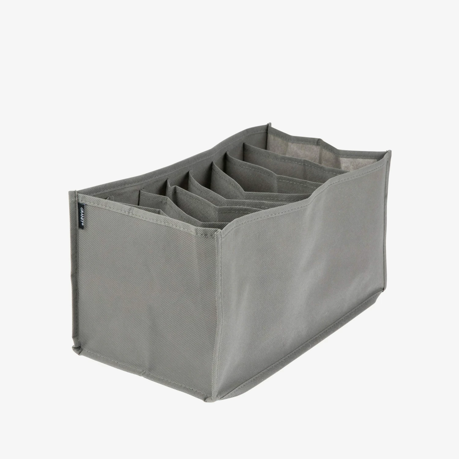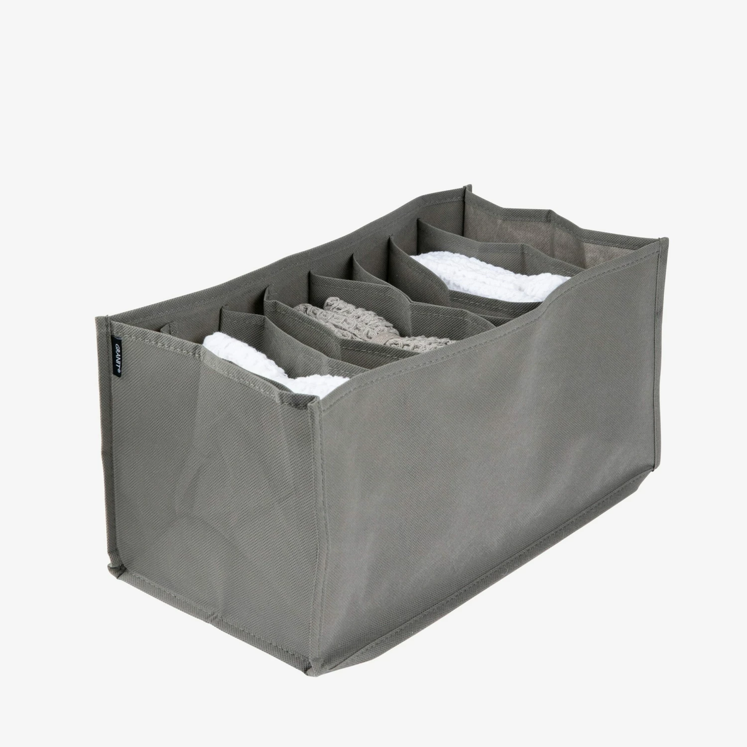 Smarte faltbare Aufbewahrungsbox mit 8 verschiedenen Fächern aus 100 % recyceltem PET. In den Fächern kannst du zum Beispiel kleine Handtücher oder andere Dinge aufbewahren, die du ordentlich verstauen möchtest. Auch in einer größeren Größe erhältlich.