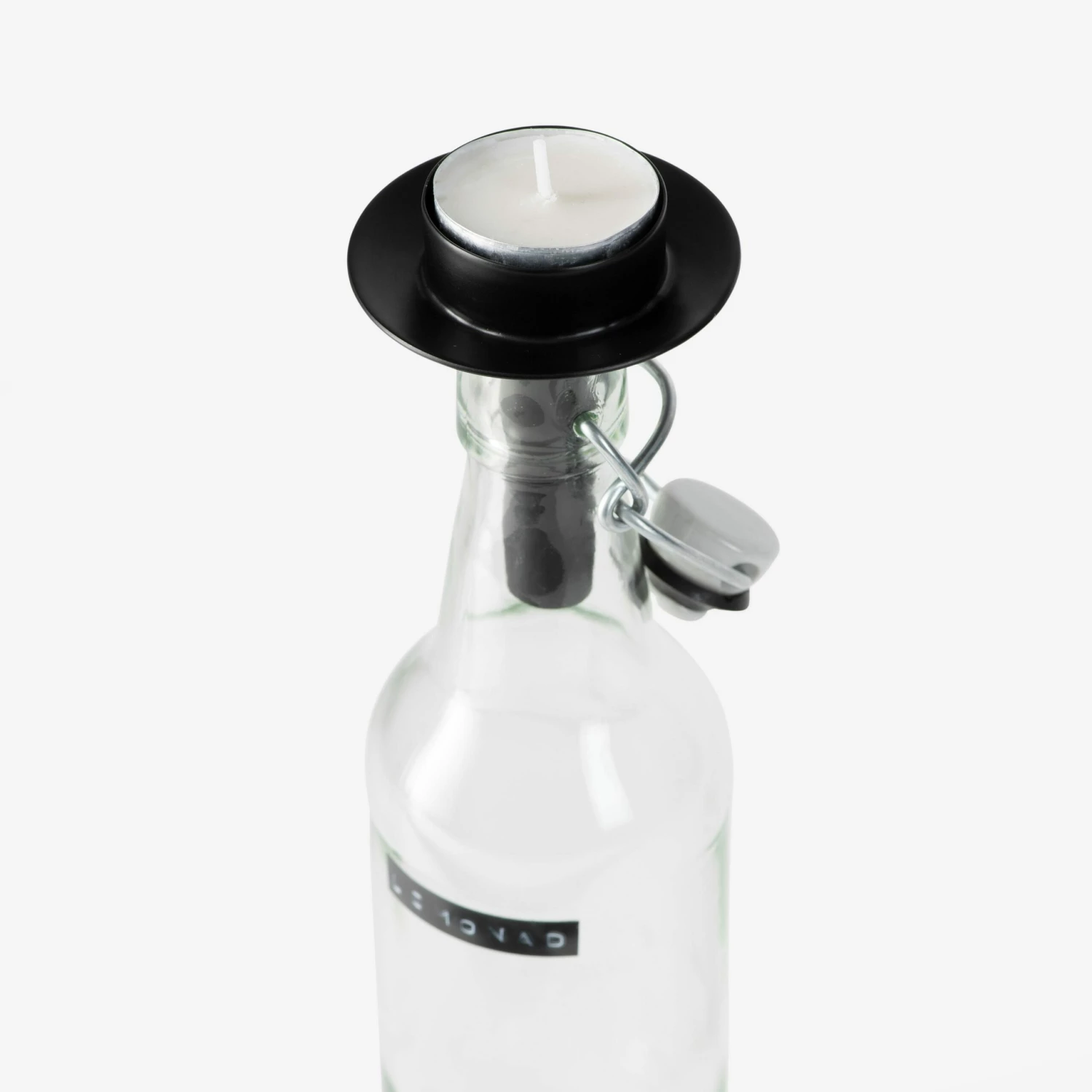 Der schwarze Kerzenhalter aus Metall verwandelt eine leere Flasche in einen coolen Kerzenständer! Geeignet für Teelichter in Standardgröße.Die Kerzenhalter haben ein schönes rustikales Aussehen mit unterschiedlich starker Patina. Die oxidierte Oberfläche macht sie zu Unikaten, daher kann das Aussehen dieser Kerzenhalter variieren.