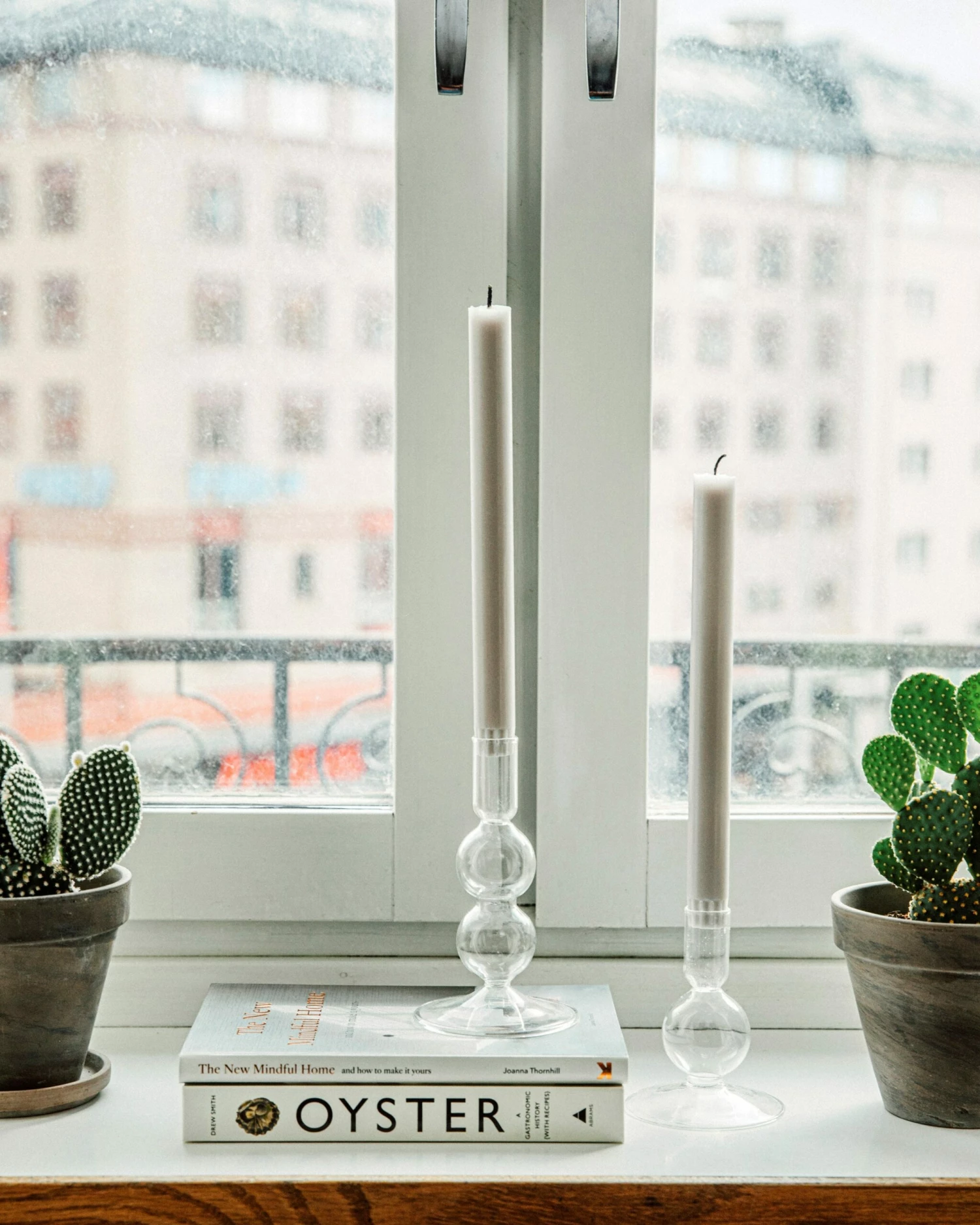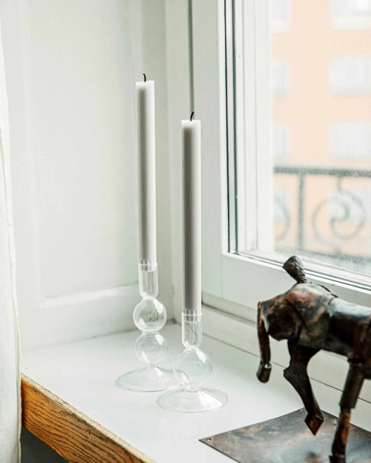 Schöner und stilvoller Kerzenständer in seiner ganzen Schlichtheit. Geeignet für Kronleuchterkerzen. Der Kerzenhalter ist aus klarem Glas gefertigt und sieht zusammen mit seinen beiden Freunden aus der gleichen Serie großartig aus. Höhe 11 cm, Durchmesser 9 cm.