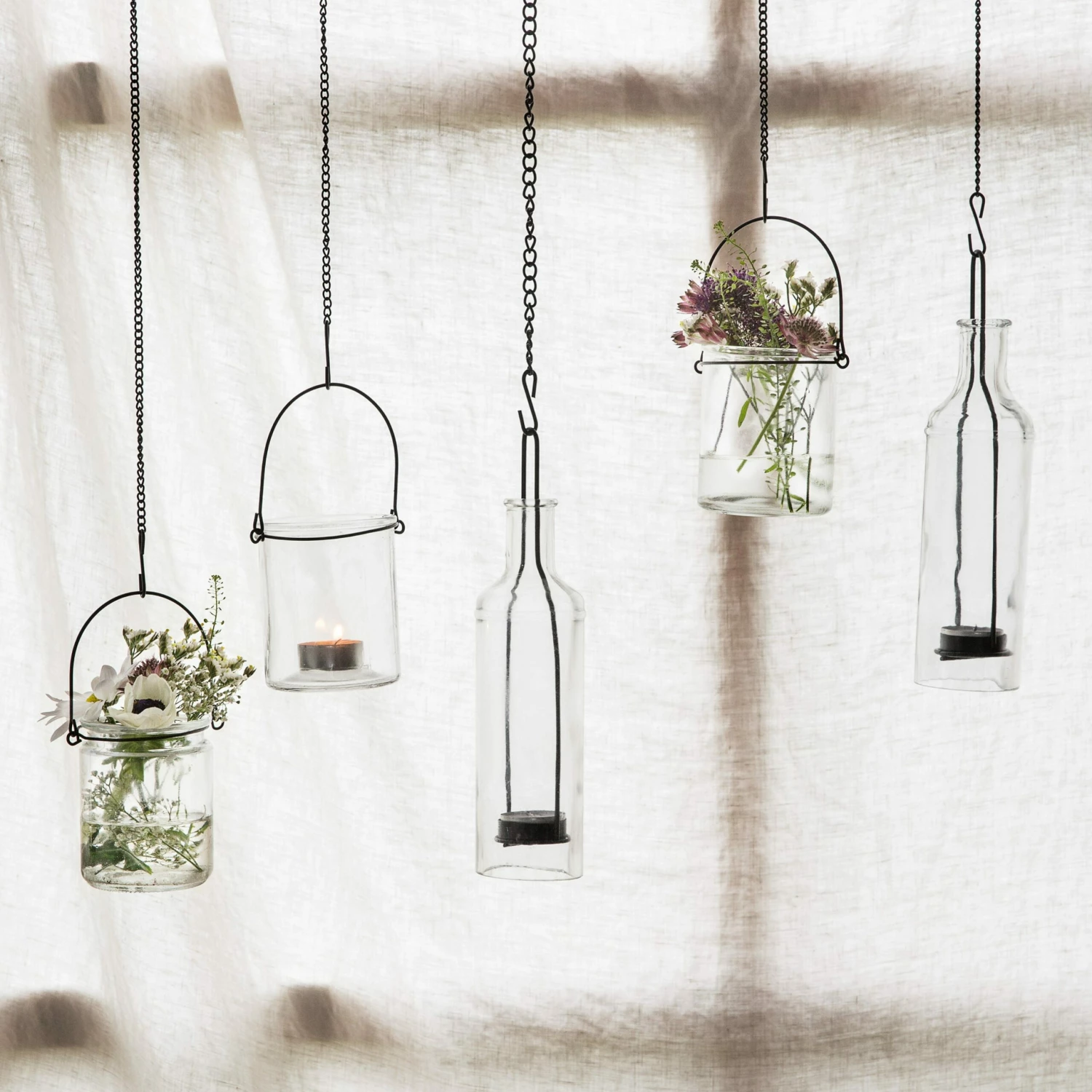 | Elegante schwarze Metallkette mit einem Haken an jedem Ende, zum Aufhängen von Laternen, Windlichtern und anderen kleinen Gegenständen. Länge 60 cm. |