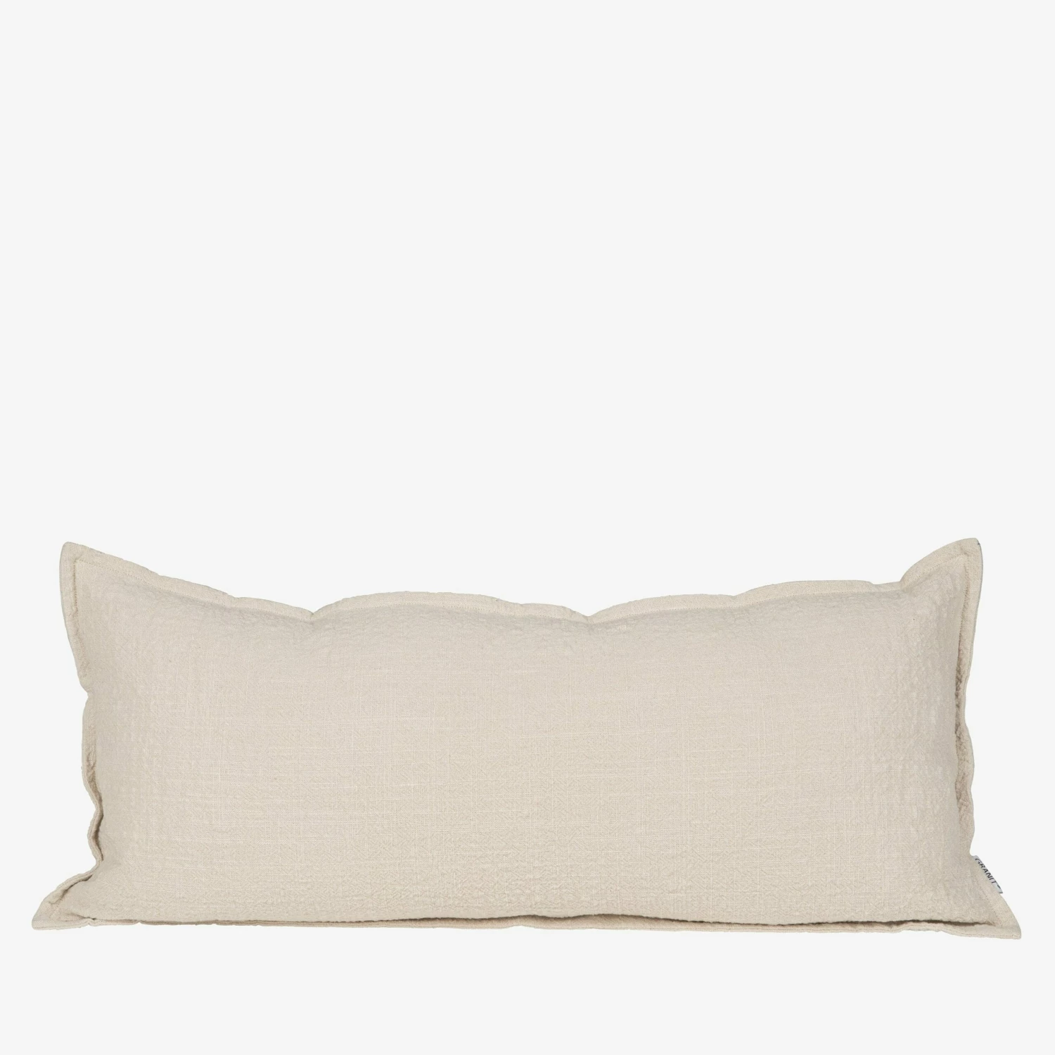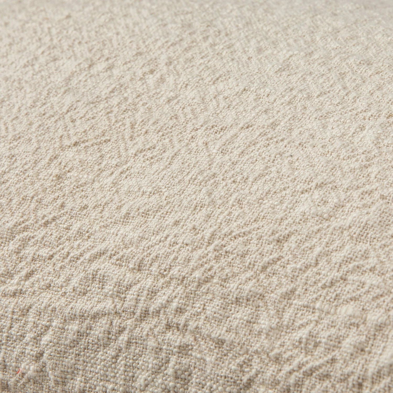 Schickes, längliches Kissen in einem sandfarbenen Ton aus Leinenmix mit abnehmbarem Bezug, der bei Verschmutzung einfach gewaschen werden kann. Der Kissenbezug ist nach OEKO-TEX® STANDARD 100 zertifiziert und passt gut zum Bett im Schlafzimmer oder auf das Sofa oder den Sessel im Wohnzimmer.
