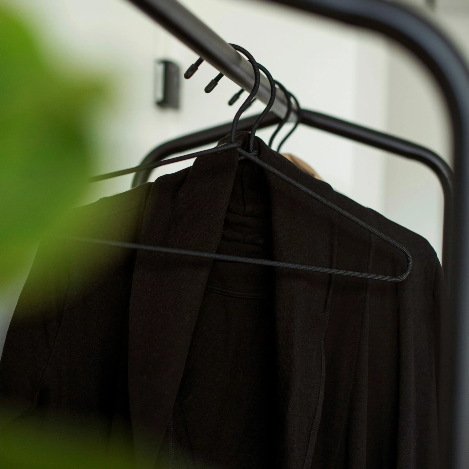 5er-Packung mit angerauter Stoff-Oberfläche aus PE und Polyester sowie Silikon. So rutschen die Kleider nicht mehr vom Bügel.