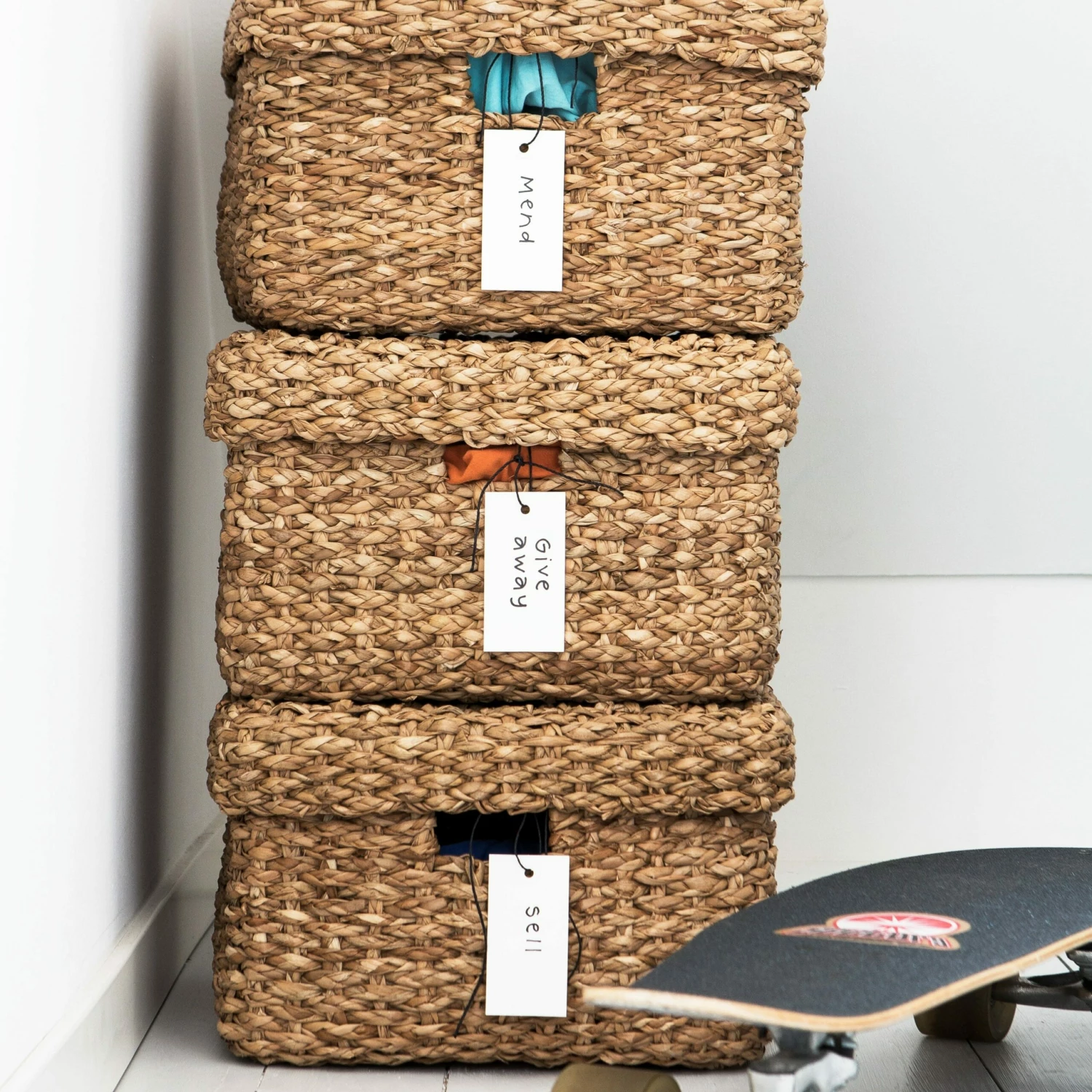 Rechteckiger Korb mit Griff aus dem Naturmaterial Abaca, handgefertigt auf den Philippinen. Die Abacafasern stammen von dem gleichnamigen Baum, auch Manilahanf genannt, aus der Gattung der Bananenpflanzen. Die widerstandsfähigen Fasern werden in der Sonne getrocknet und dann zu Körben in verschiedenen Modellen verarbeitet. Es dauert ca. 1,5 Tage einen Korb herzustellen. Das Familienunternehmen auf den Philippinen versorgt ca. 2500 Familien, die entweder direkt in der Herstellung arbeiten oder die Produzenten der Rohmaterialien Abaca oder Bast sind. Die Fabrik liegt 50 km südlich von Manila.