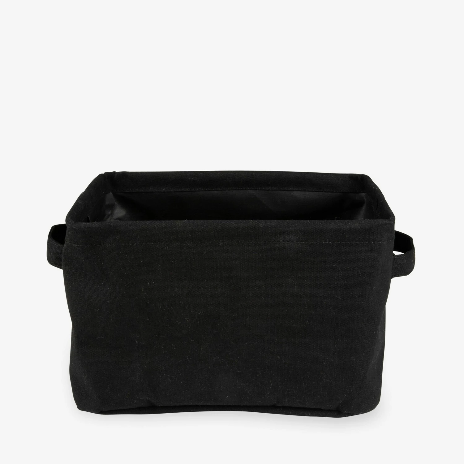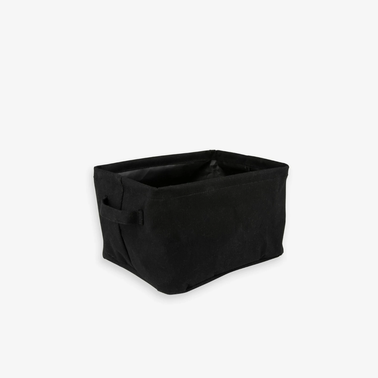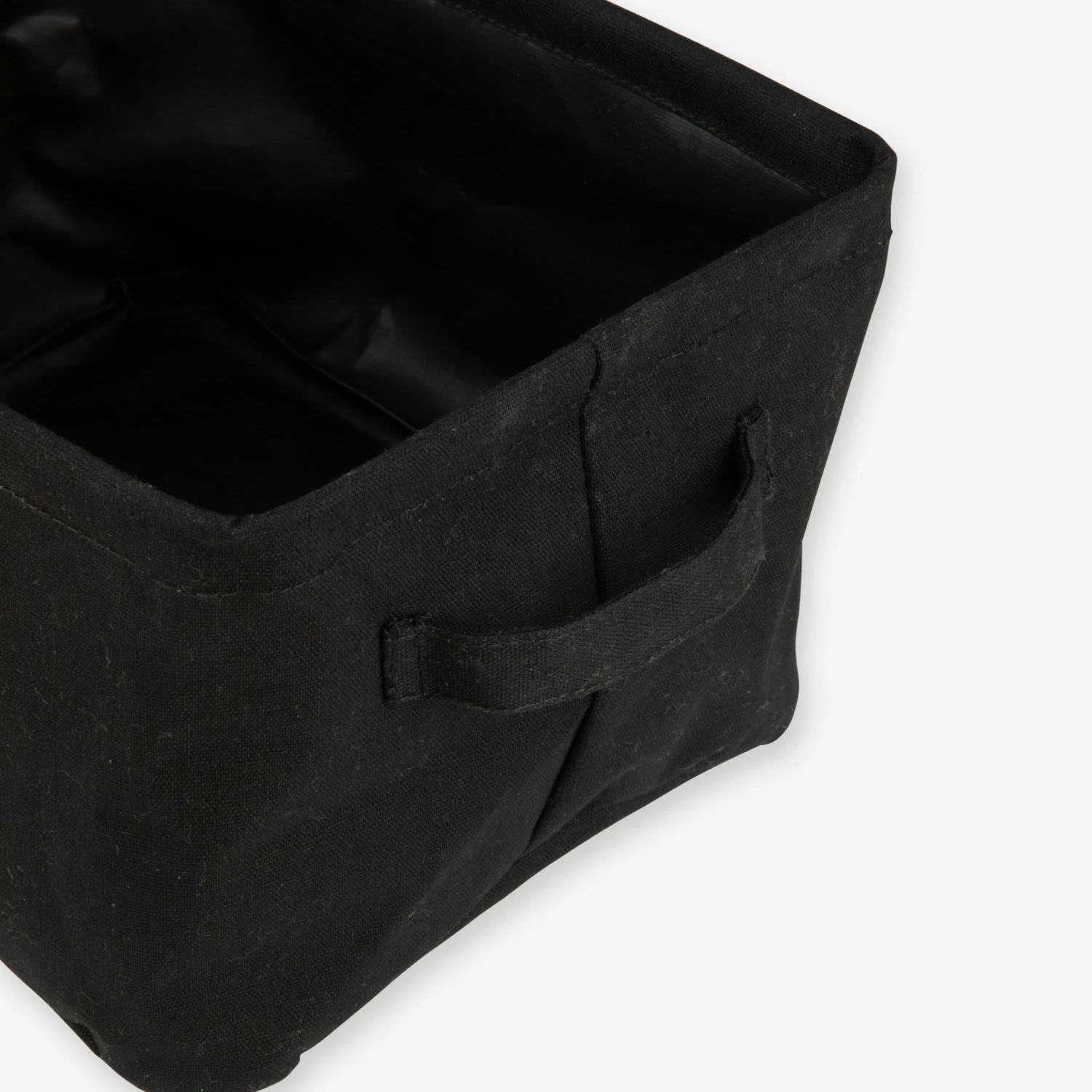 Schwarzer, faltbarer Korb mit leicht wasserabweisender Innenseite. Ideal zum Sortieren von kleinen Gegenständen in jedem Raum des Hauses, wie Spielzeug im Kinderzimmer oder zum Sortieren im Kleiderschrank. Griffe an jeder kurzen Seite.