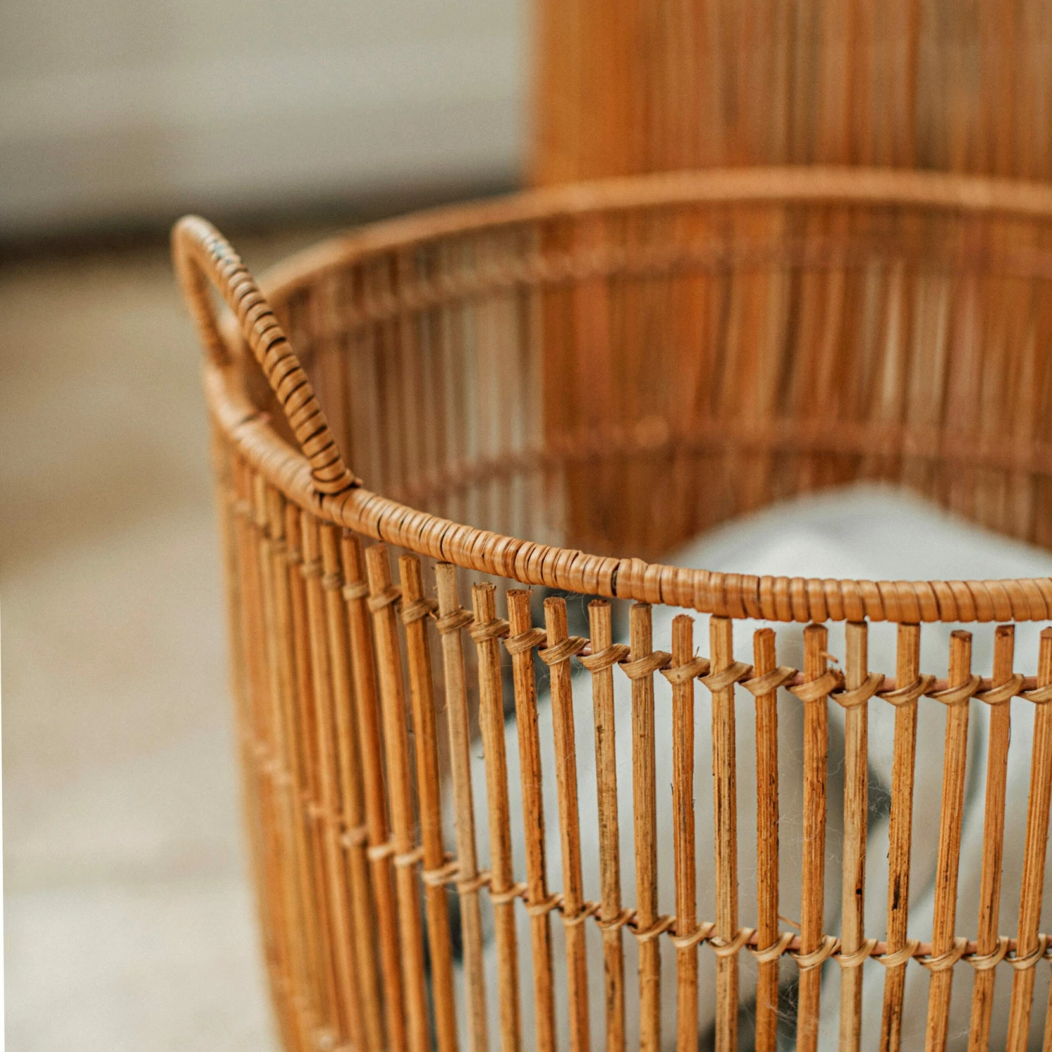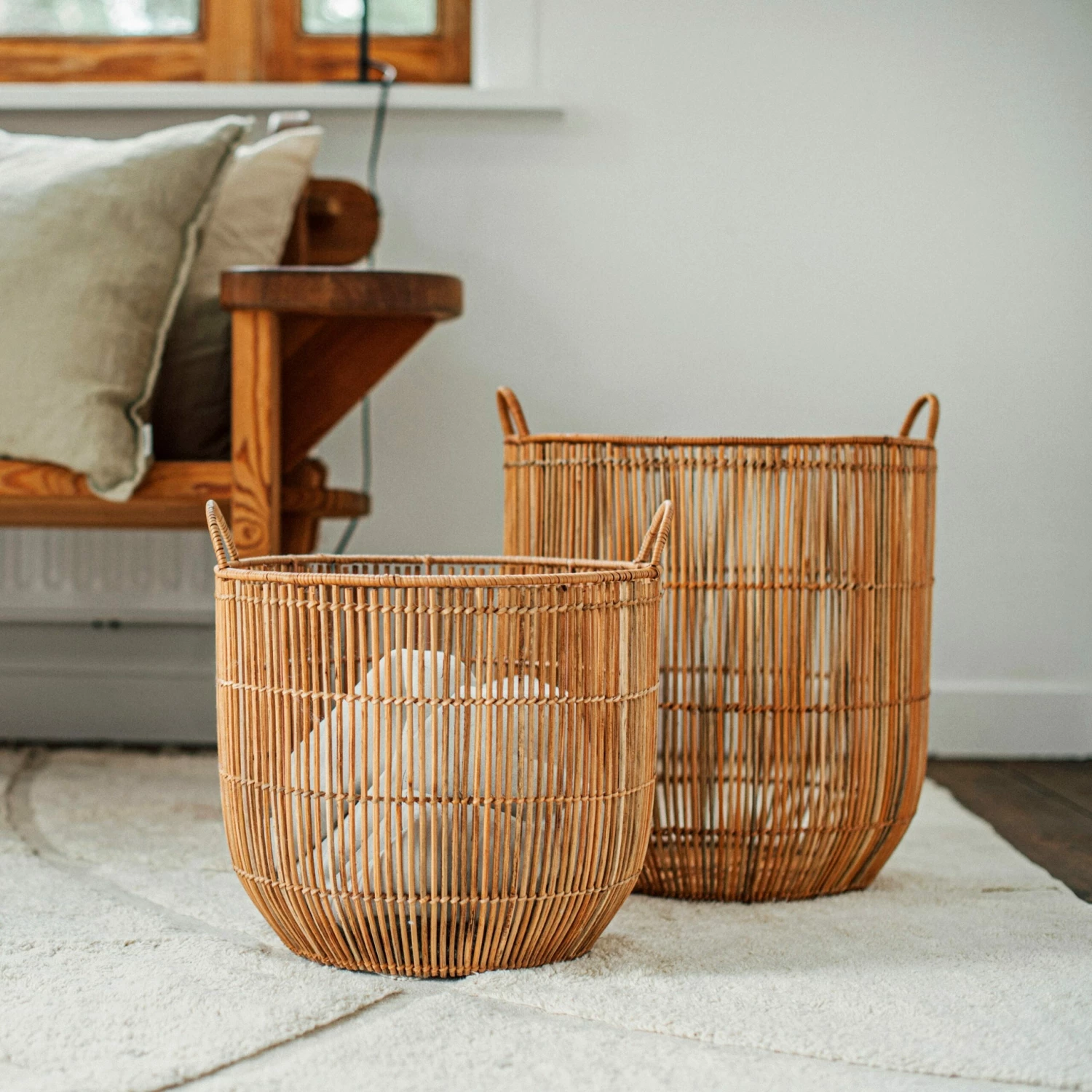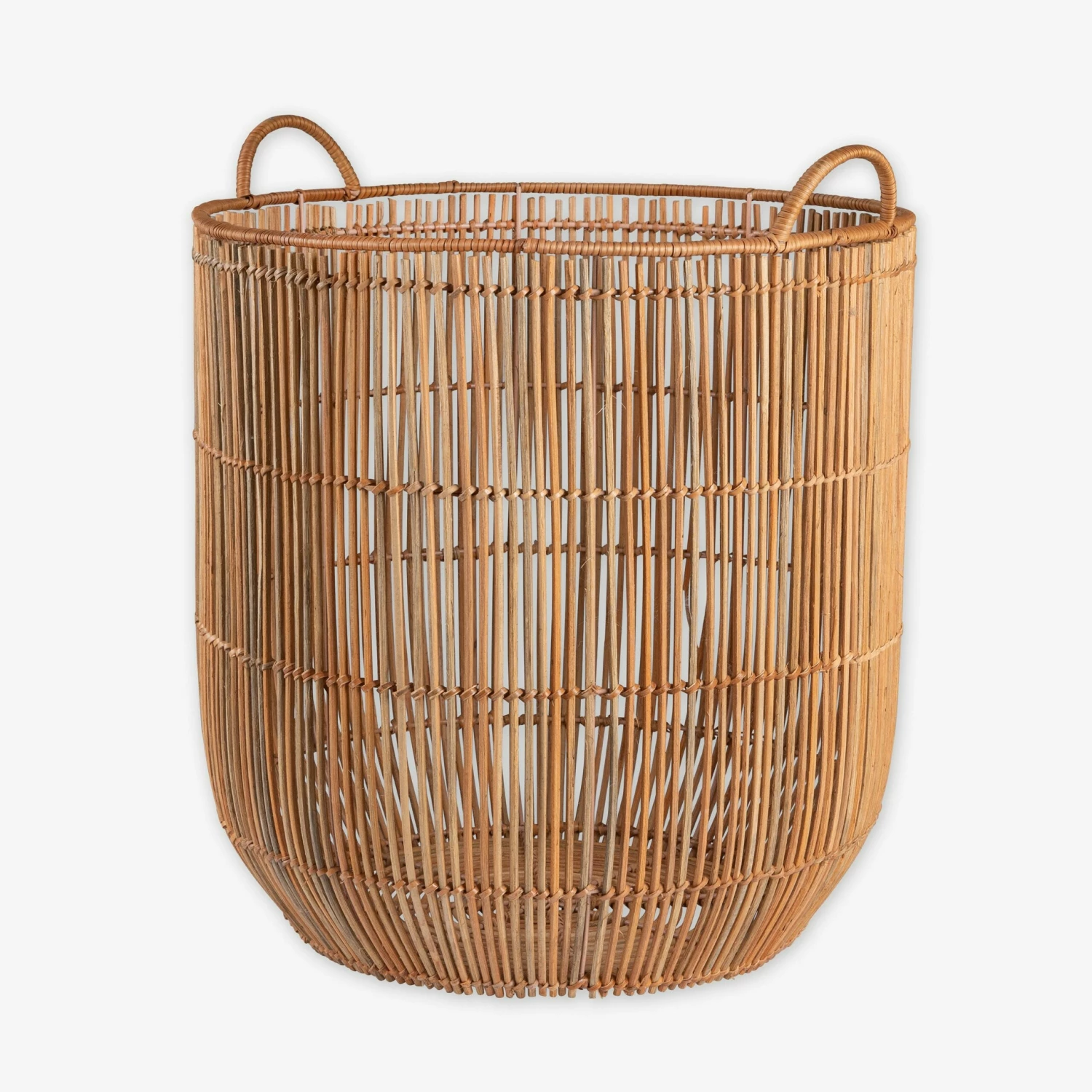 Ein stilvoller Rattankorb, der in drei Größen erhältlich ist. Er macht sich alleine gut, sieht aber auch als Set toll aus. Die Konstruktion ist mit einem inneren Metalldraht verstärkt, damit der Korb stabil bleibt und seine Form behält. Verwende ihn als Aufbewahrungskorb oder als dekoratives Element.Maße: H 40 cm Ø 45 cm.