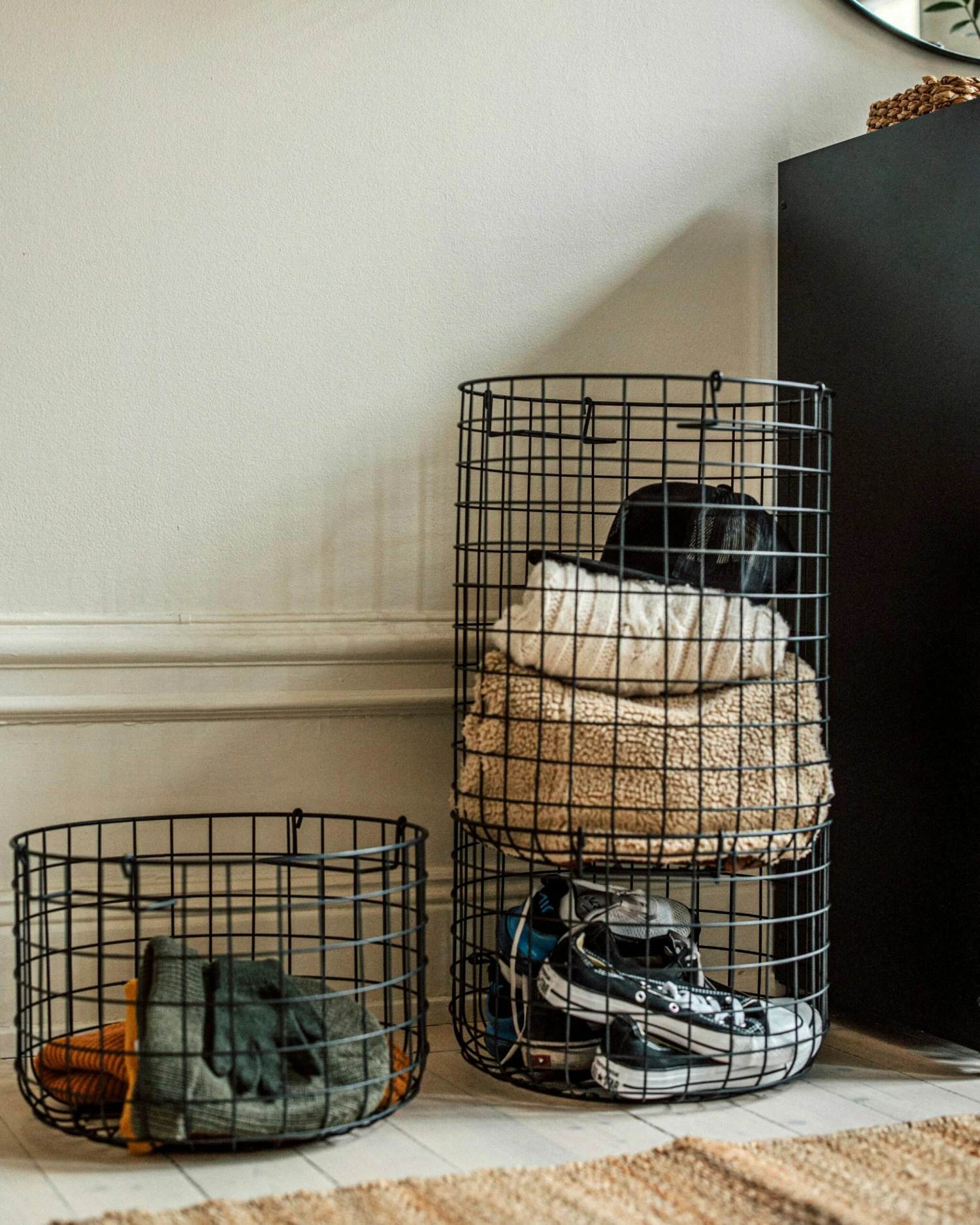 Metallkorb, der stapelbar ist. Staple zwei hohe Körbe übereinander oder kombiniere diesen Korb mit einem niedrigeren.