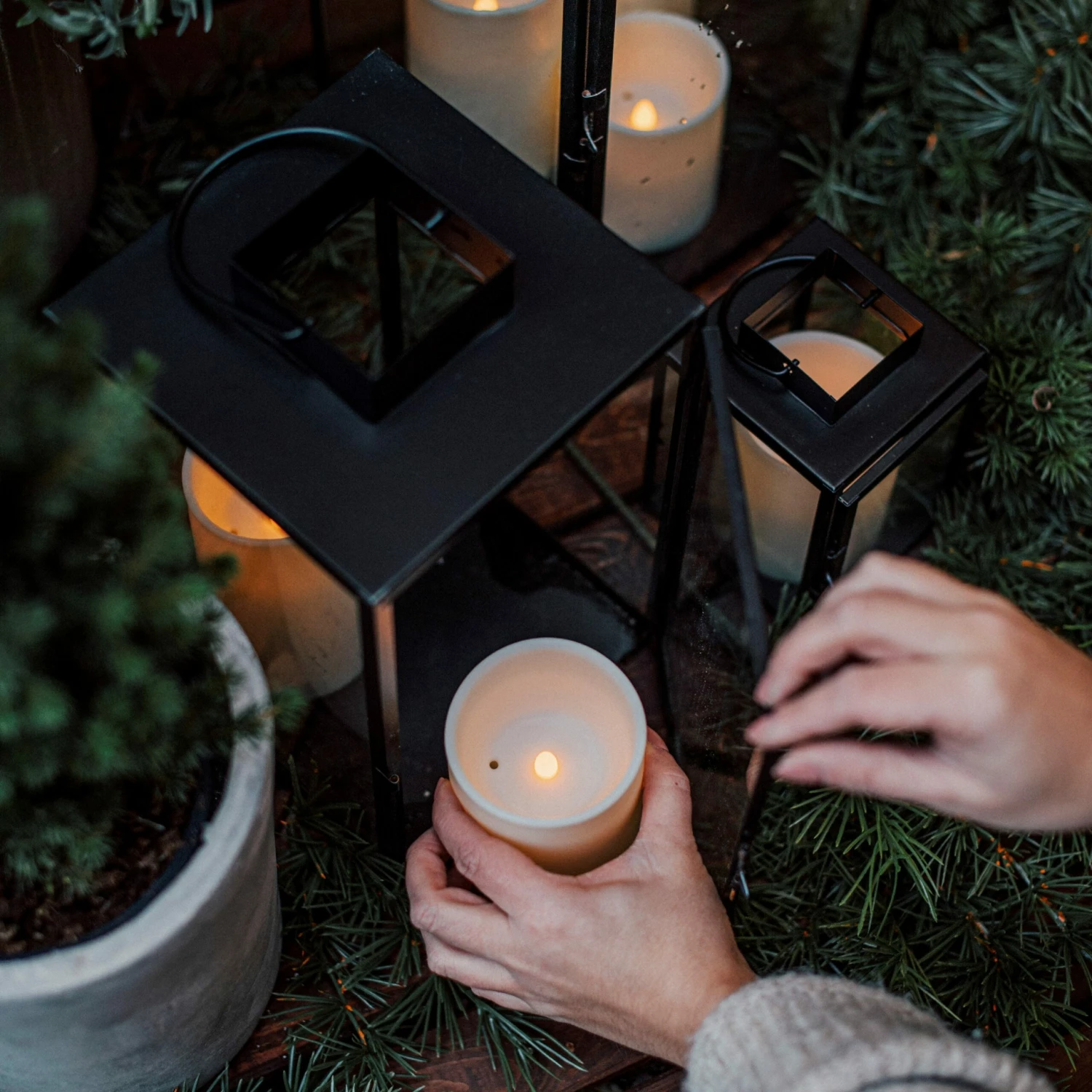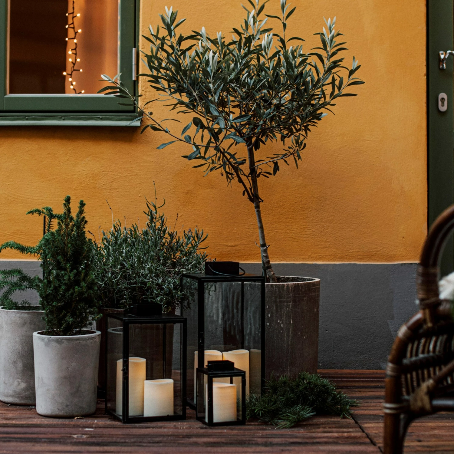 Natürliches LED-Blocklicht für den Außenbereich, ideal, wenn du in den Wintermonaten eine schöne Atmosphäre auf dem Balkon oder der Terrasse schaffen willst. Timer-Funktion. Erhältlich in verschiedenen Größen.