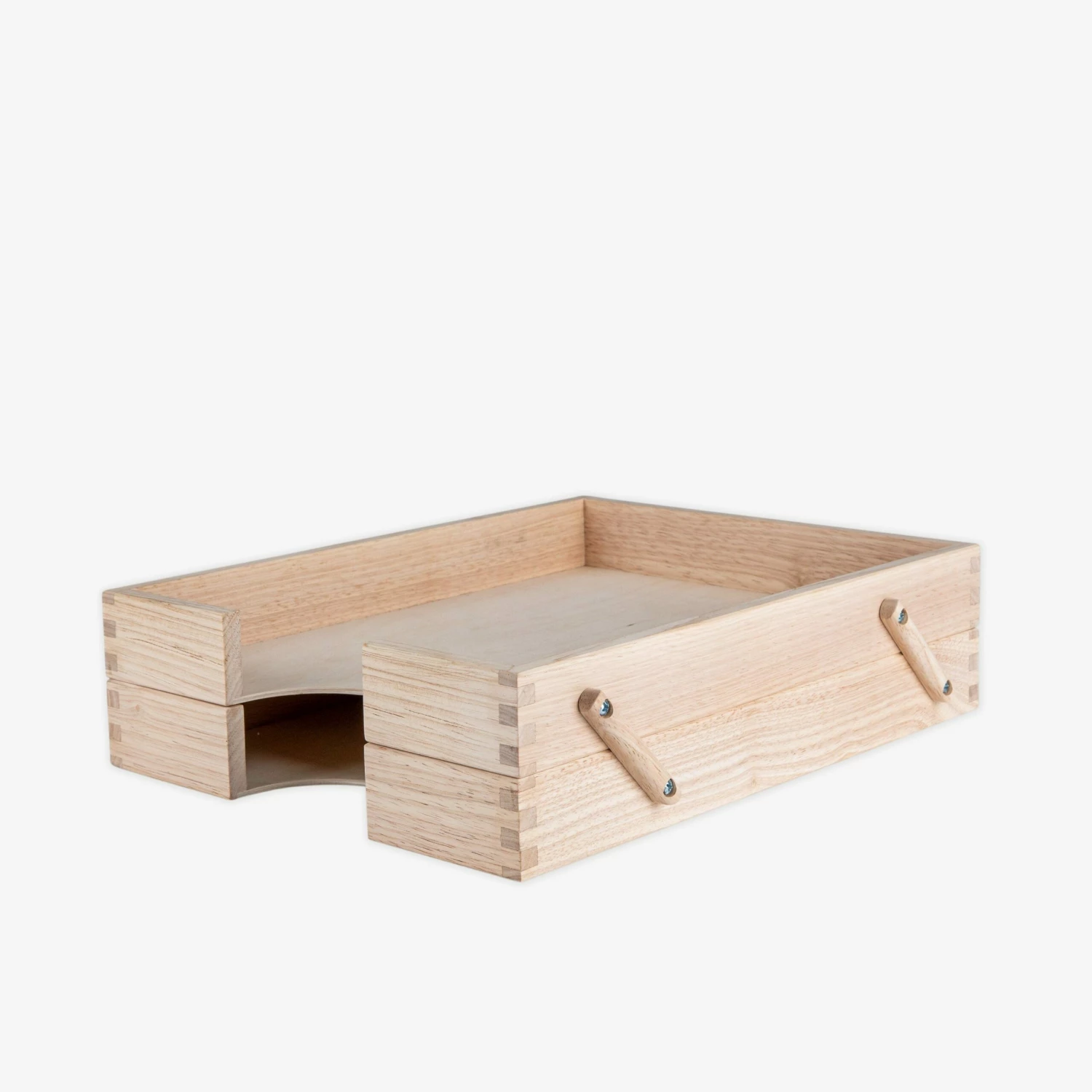 Stilrent brevfack i två våningar som passar vårt övriga utbud av skrivbordsaccessoarer i trä. Tillverkat av obehandlat certifierat gummiträ. Mått: L 34 cm B 27 cm H 9 cm.