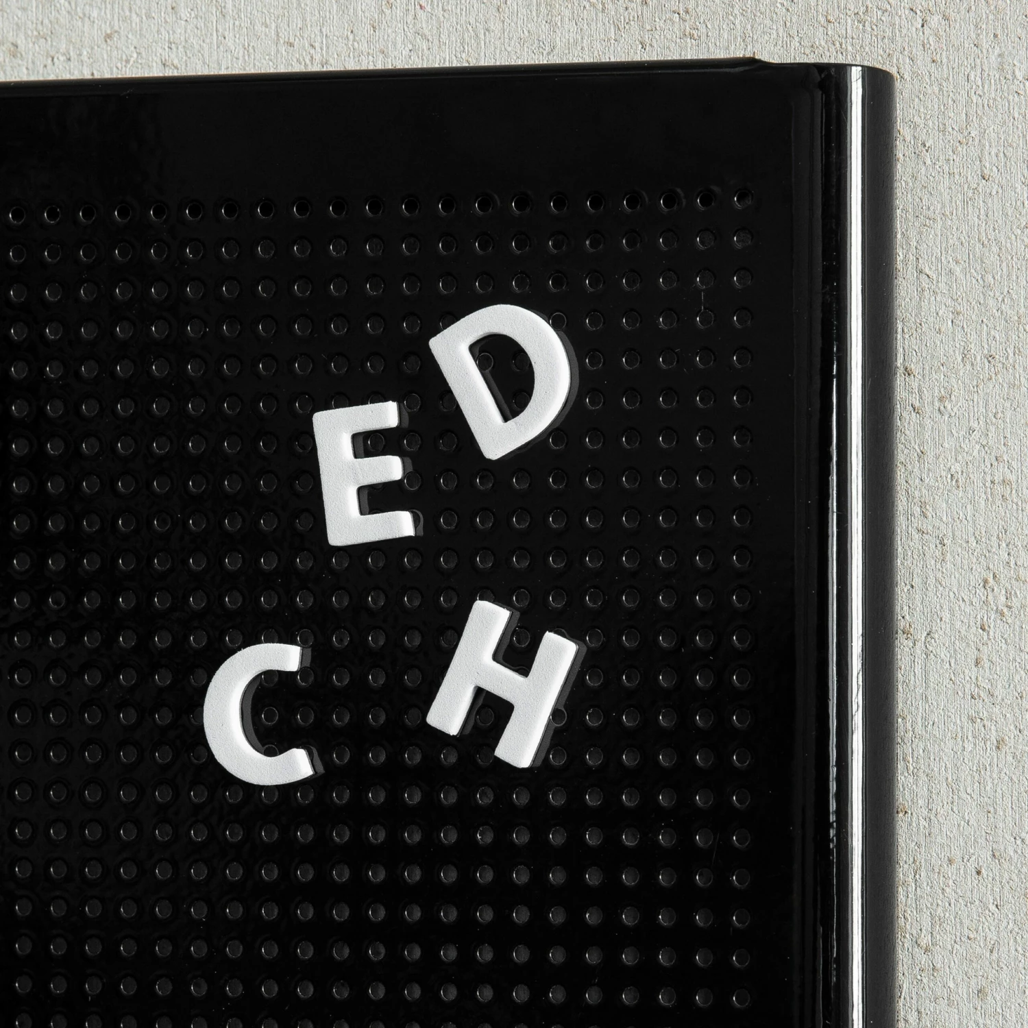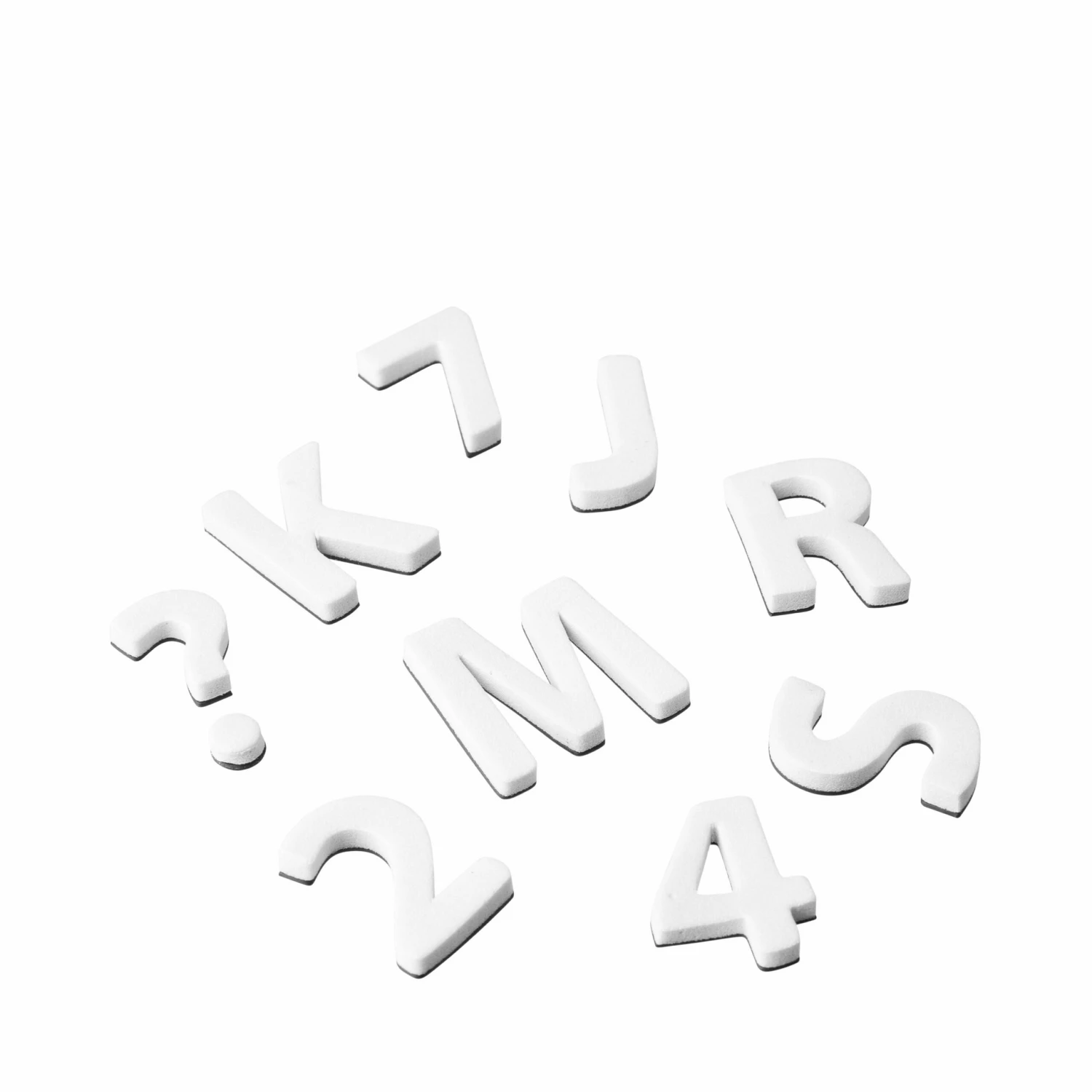 Weiße und weiche Buchstaben für magnetische Oberflächen. Buchstaben, Zahlen und Symbole, mindestens 2 von jeder Art.
