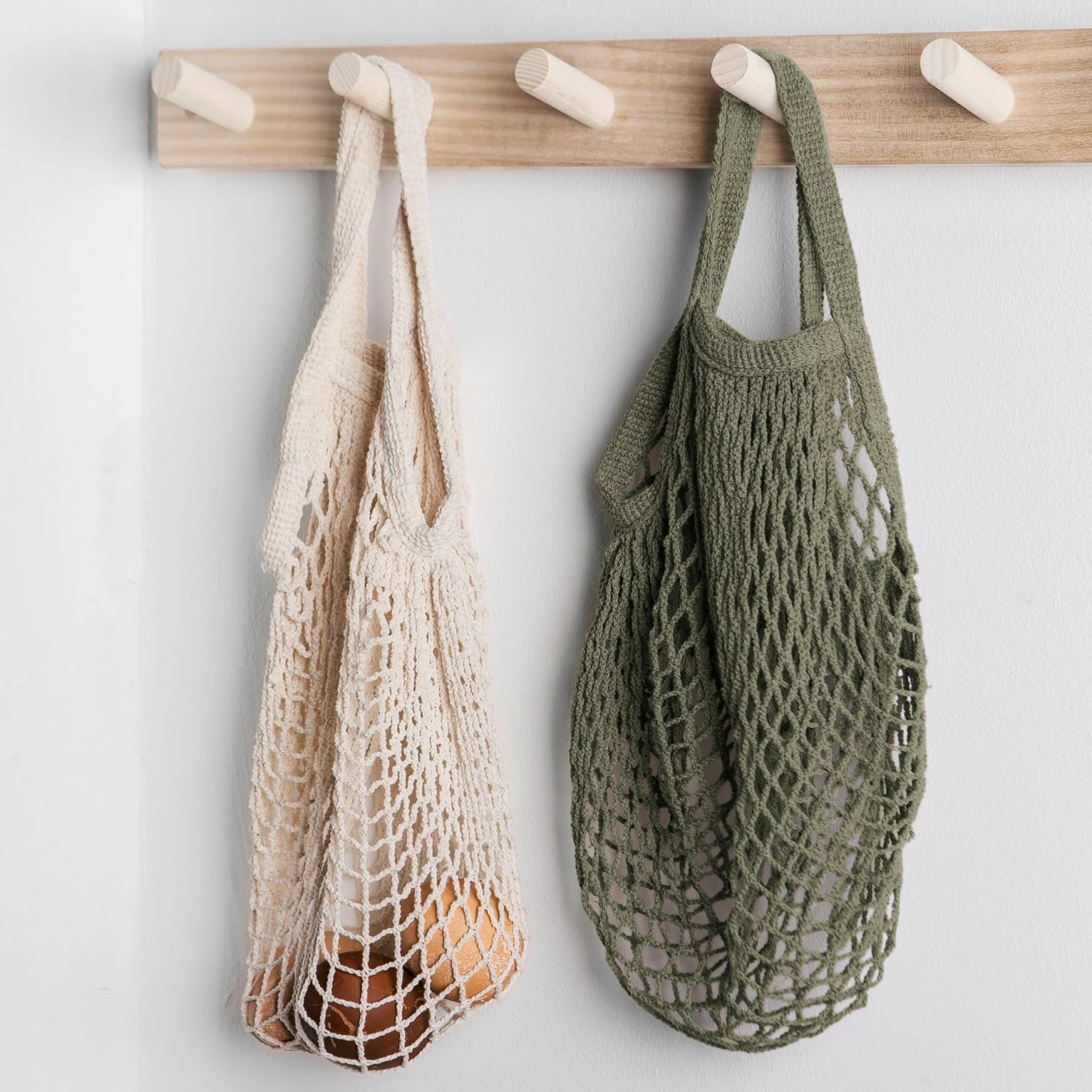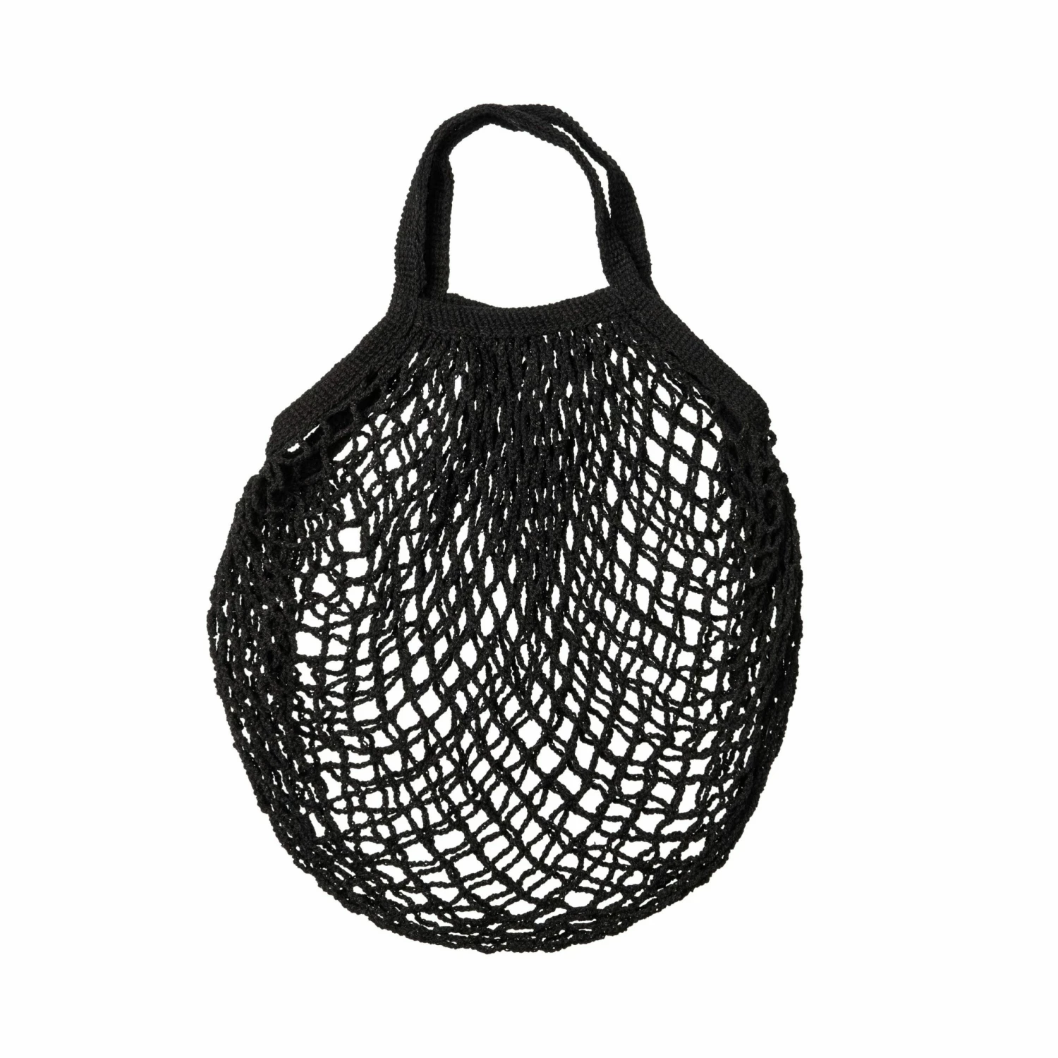 Schwarze Netztasche in kleinerer Ausführung, aus Baumwolle und Polyester. Eine intelligentere und fairere Alternative zur Einkaufstüte. In dieser kleinen Netztasche lassen sich z. B. auch Obst und Gemüse in der Küche aufbewahren. Zwiebeln, Paprika und Tomaten sind in dem Netzbeutel gut sichtbar. Auch am Strand ist die Netztasche ein smarter Begleiter, da sich in ihr kein Sand sammelt. Für ein Handtuch und einen Badeanzug in einer kleineren Größe ist sie perfekt.