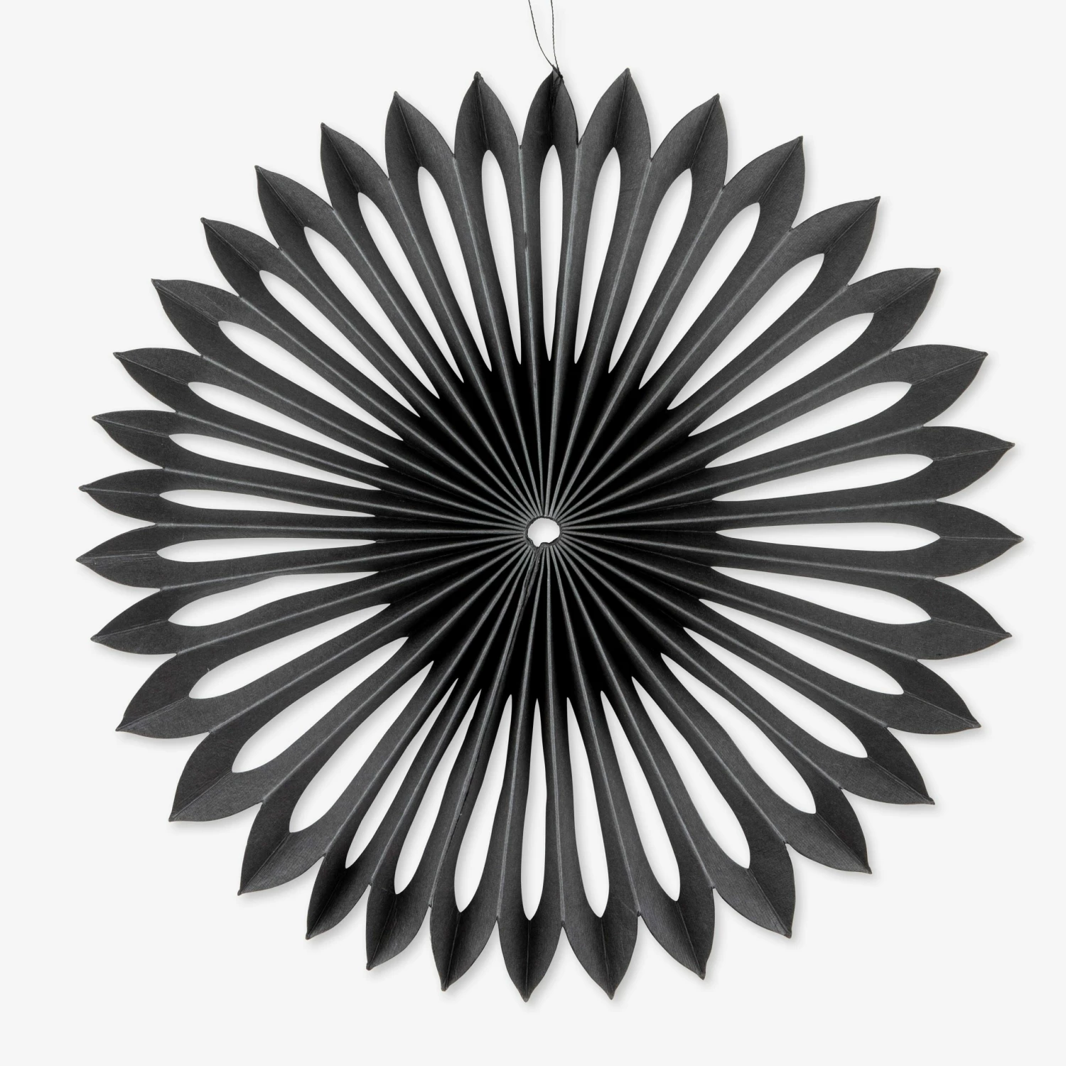 | Papierdekorationen in Form von gefalteten Kreisen. Verwende die Dekorationen wie du möchtest! Kombiniere verschiedene Größen und Farben. Du kannst sie zum Beispiel als Tischdekoration an unsere Aufhänger hängen.Die dunkelgraue Dekoration lässt sich aufklappen und mit seitlich angebrachten Klebestreifen leicht befestigen. Inklusive Kordel. Hergestellt aus recyceltem Baumwollpapier.Maße: Ø 30 cm |