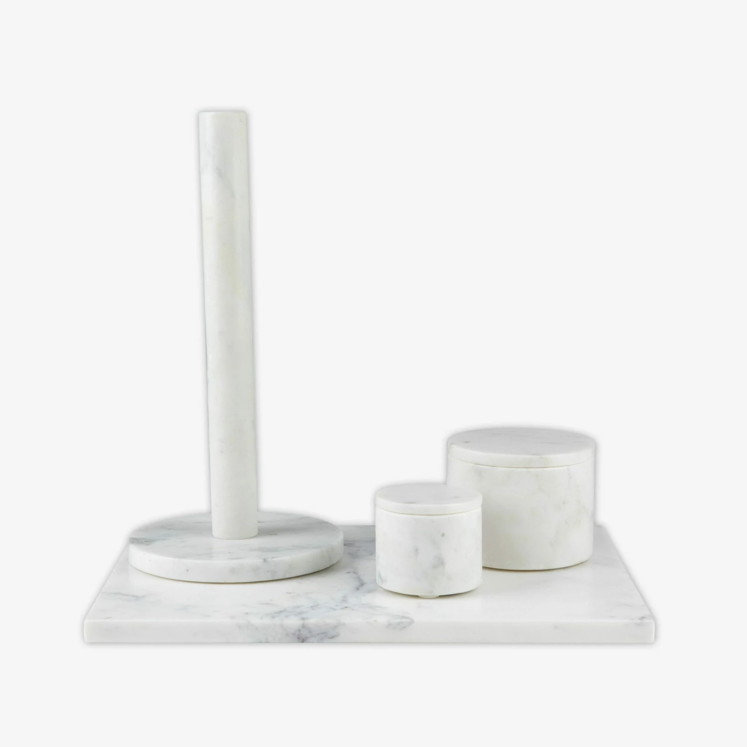 | Papierhalter aus weißem Marmor, Teil einer Serie mit weiteren stilvollen Küchenaccessoires aus weißem Marmor. Ein robustes Stück, das sowohl seinen Zweck erfüllt als auch ein stilvolles Interieur-Detail ist. H 30,5 cm Ø 15,2 cm. |