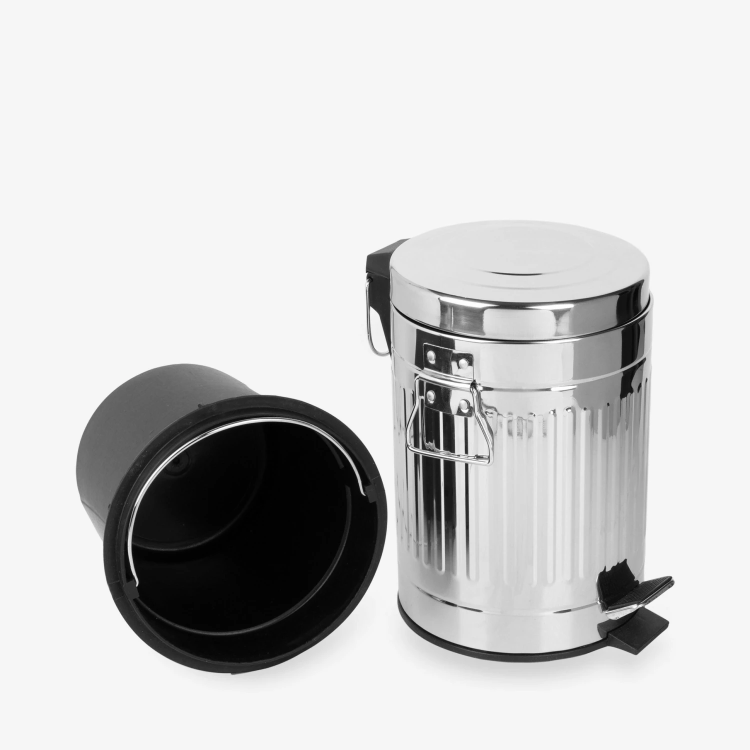 | Pedal-Eimer/Abfalleimer aus Metall! Natürlich mit abnehmbarem Kunststoffeimer zum einfachen Entleeren. Fasst 12 Liter. H 40cm B 24,5 cm T 24,5 cm. |