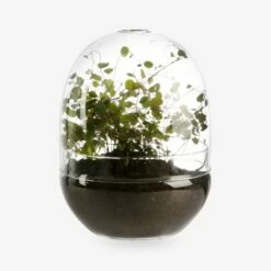Pflanzengehäuse mit einer dazugehörigen Glaskuppel. Die Glaskuppel hat oben ein Loch, durch das der Sauerstoff eindringen kann. In einen Topf mit einer Pflanze stellen oder direkt in der Kuppel züchten.Auch in einer kleineren Größe erhältlich.