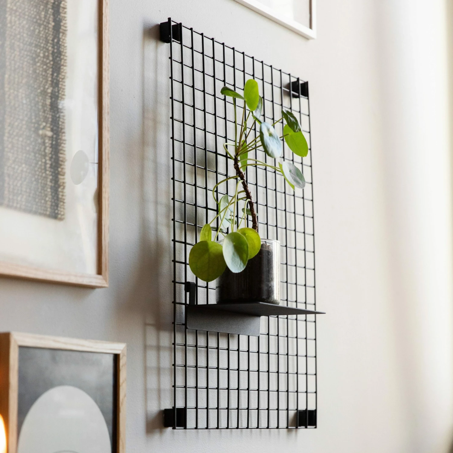 Kleines praktisches Regal mit zwei Haken auf der einen Langseite, das du an unsere Aufbewahrungsgitter hängen kannst.