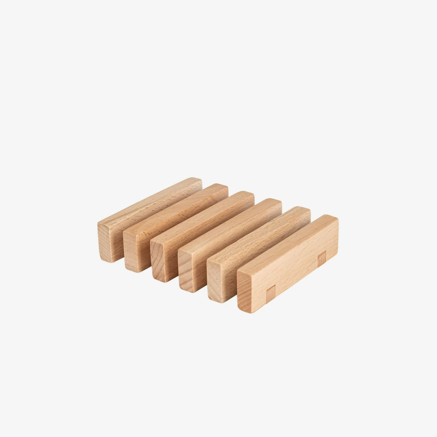 Neutraler Seifenhalter aus FSC-zertifiziertem Buchenholz, der im Bad oder in der Küche gut aussieht, um Seife aufzubewahren. Wenn die Seife auf dem Halter trocknet, hält sie länger, da sie auf einer trockenen Oberfläche gelagert wird.