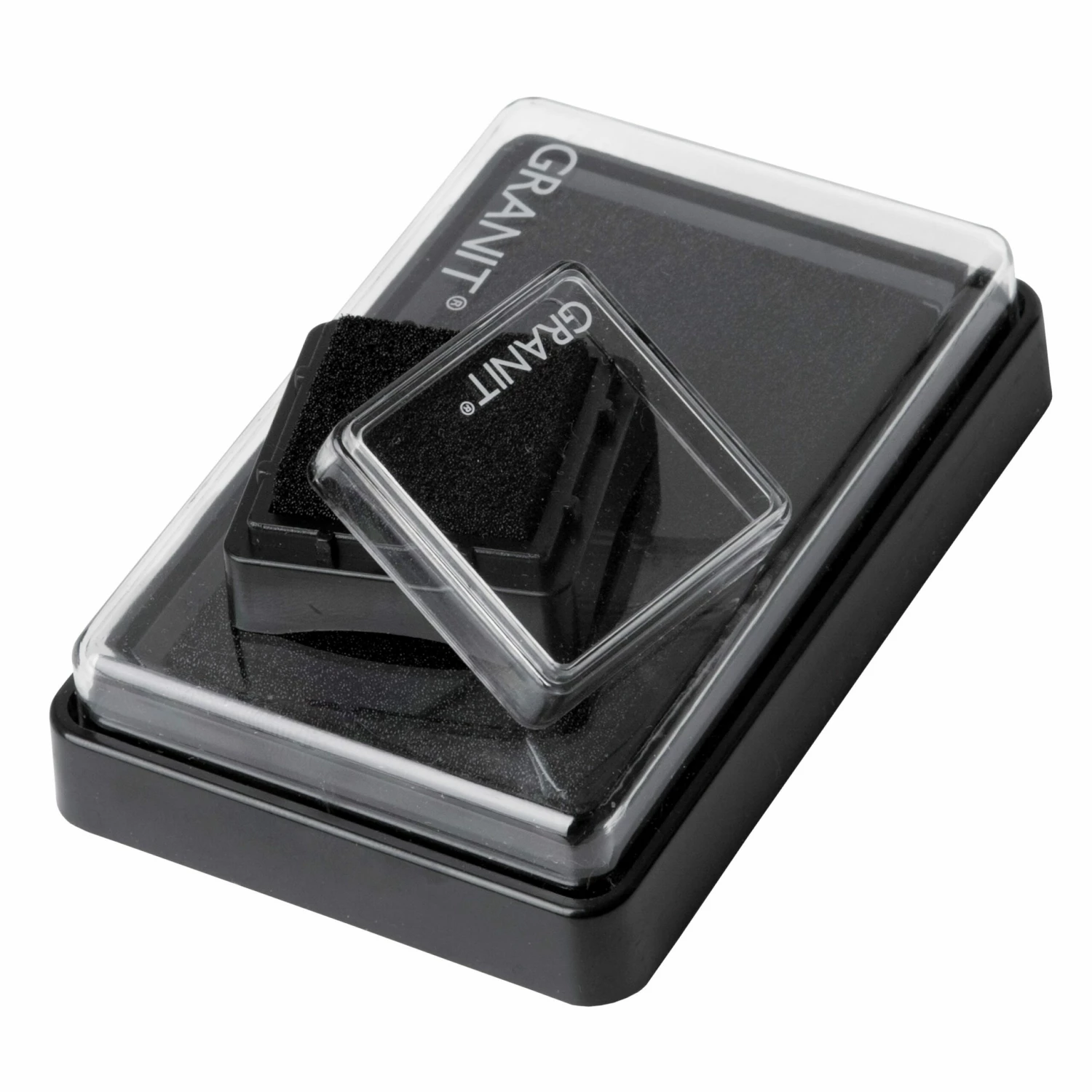 Größeres Stempelkissen mit schwarzer Tinte, das sich super für verschiedene Stempelgrößen eignet und lange hält.