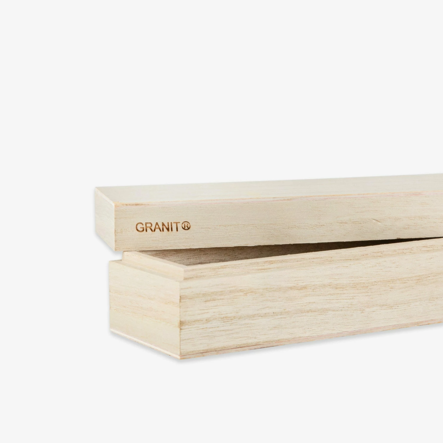 Hübsche Stiftbox aus Holz mit Deckel, passend zu unseren anderen Schreibtisch-Accessoires aus Holz. Maße: 5 x 6 x 21 cm.