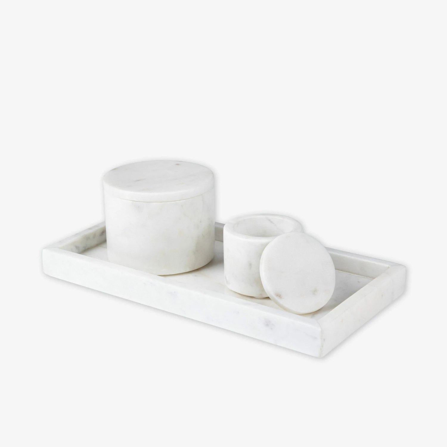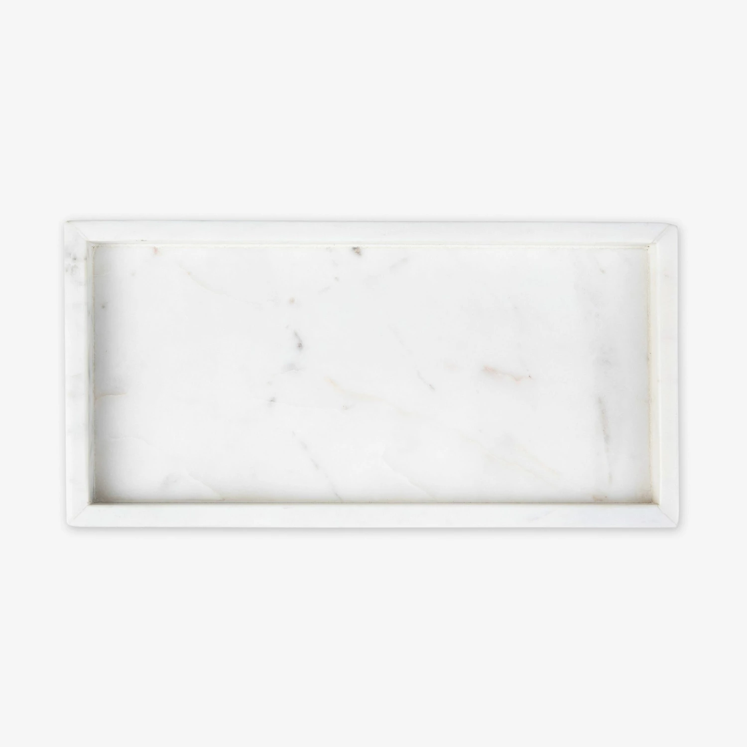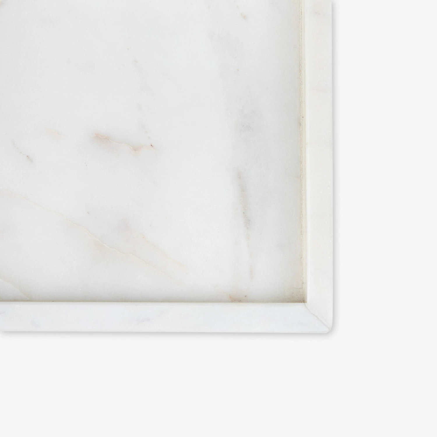 Stilvolles Tablett aus weißem Marmor mit Kanten. Geeignet für die Aufbewahrung und Präsentation in Küche und Bad. Dazu passen die schönen Gläser im gleichen Stil.Maße: B 15 L 30 T 2,5 cm.Marmor ist ein natürliches Material, das sowohl in der Farbe als auch in der Form variieren kann – kein Produkt gleic