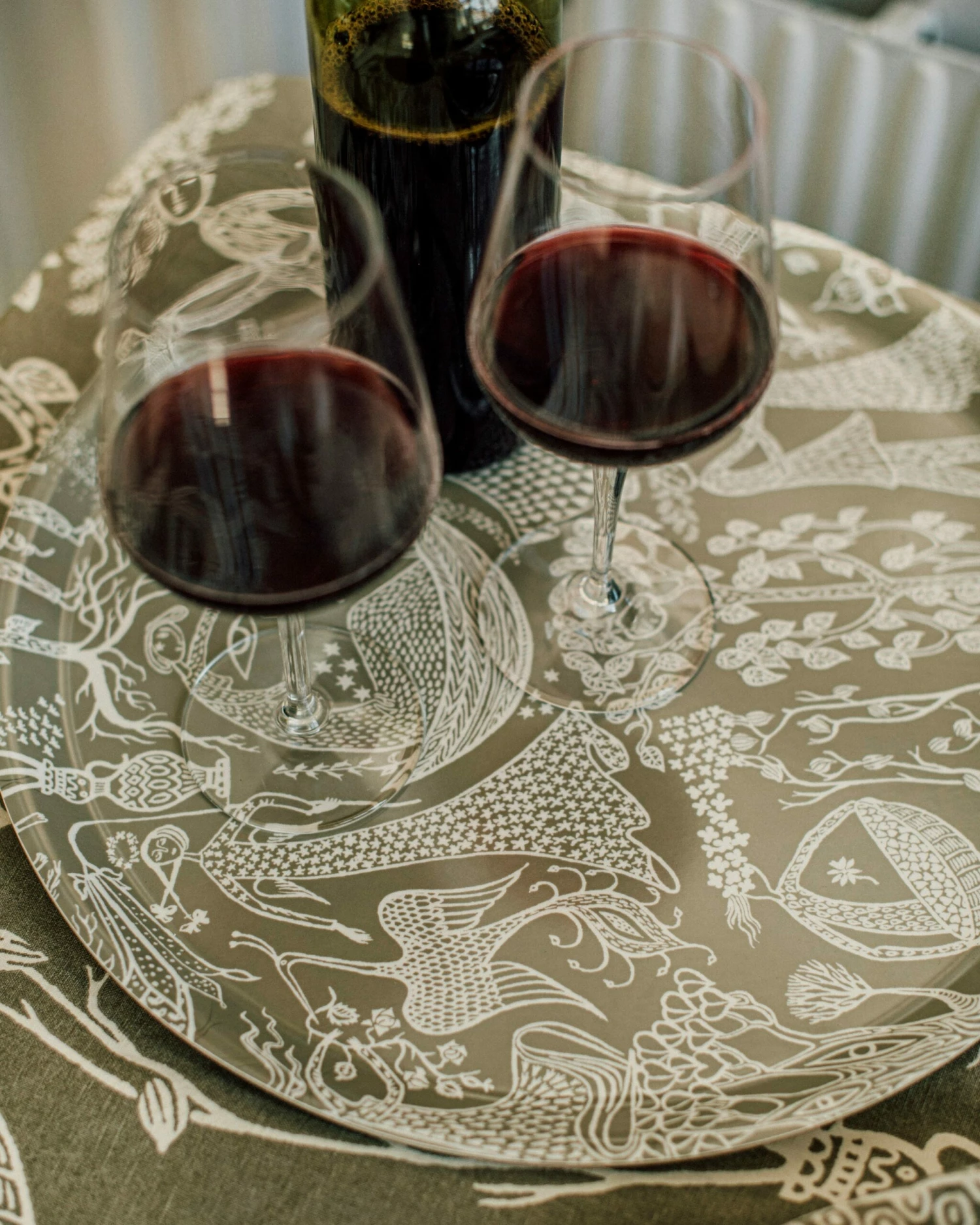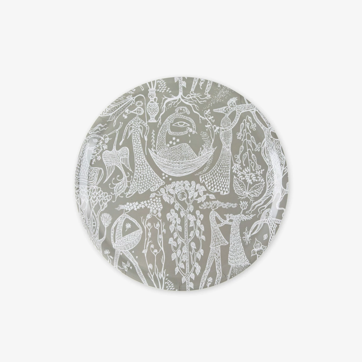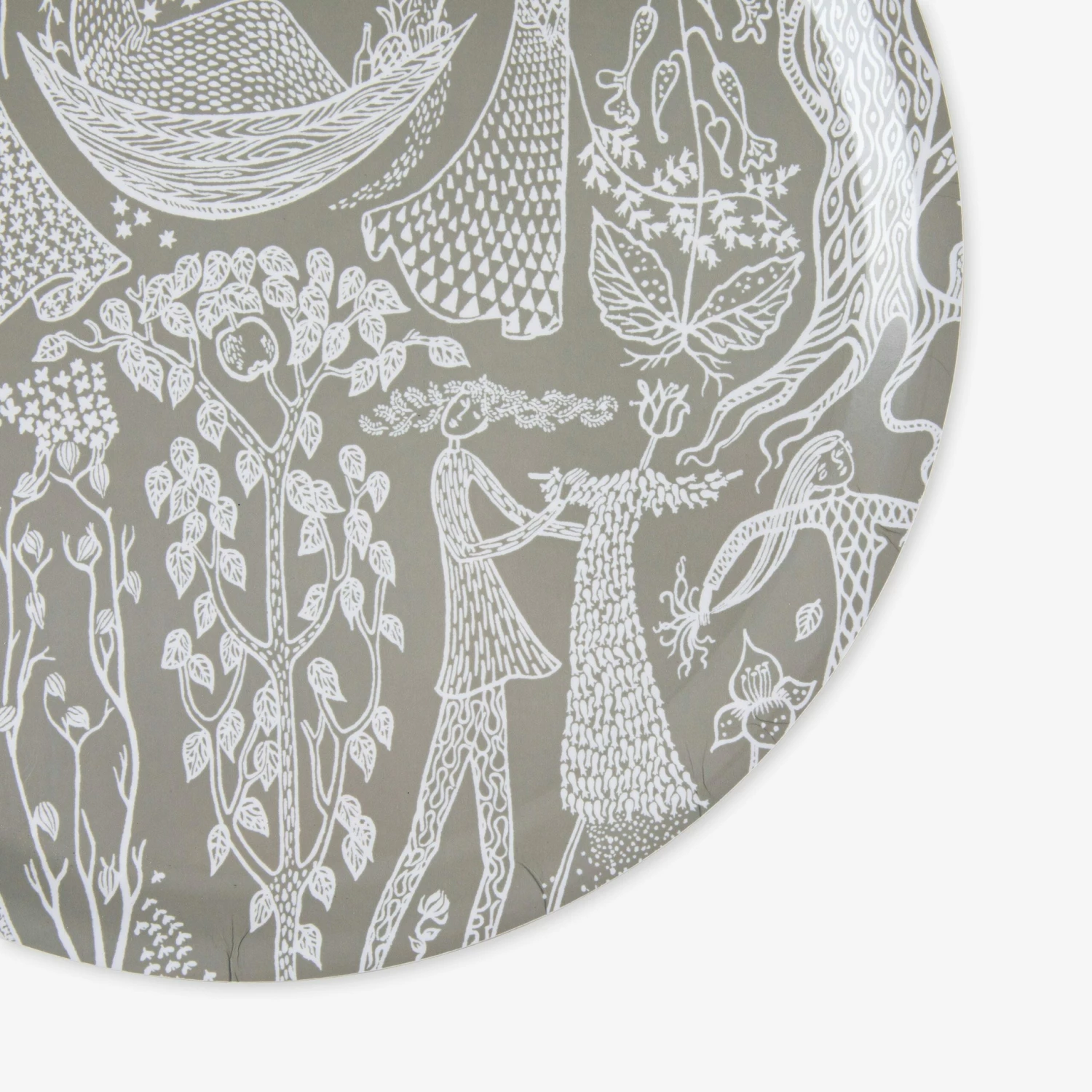 Rundes Tablett aus Birkenlaminat mit dem inspirierenden Muster Poème d’Amour in einer schönen grünen Farbe. Eine einzigartige Zusammenarbeit, bei der Granit ausgewählte, von Stig Lindberg entworfene Muster, interpretiert hat. Gegenwart und Vergangenheit treffen aufeinander – und das mit einem tollen Twist! Das Tablett ist ein perfektes Geschenk, das man sich wünschen oder verschenken kann. Spülmaschinenfest. FSC-zertifiziertes Birkenfurnier.Maße: Ø 38 cm H 1,3 cm.POÈME D’AMOUR – 1947 entwarf Stig dieses Textilmuster, in das sich die damalige Direktorin der Textilkammer von dem Kaufhaus NK, Astrid Sampe, verliebte. Sie ließ ein Kleid nach diesem Muster anfertigen, das heute im Nordischen Museum ausgestellt ist. Bei dieser Kollektion hat Granit die Möglichkeit erhalten, das Muster in seiner eigenen, einzigartigen Farbe zu reproduzieren.