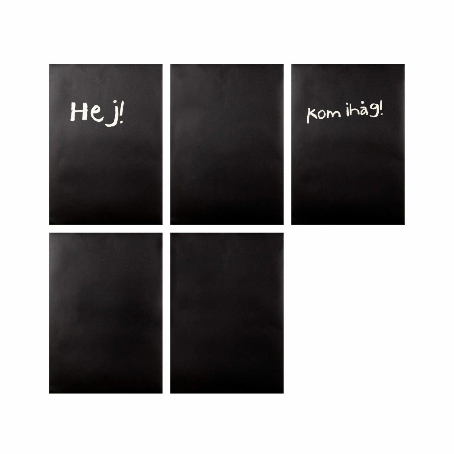 Mit diesem “Tafelsticker 5er-Pack” wirst du von nun an für dich, für deine Familie oder für die Kollegen Notizen jeder Art hinterlassen können. Die Packung enthält 5 A4 Schreibtafel Sticker, die auf allen glatten Oberflächen haften und schnell wieder entfernt werden können. Es ist besser, sie nicht auf gestrichenem Holz oder auf Tapeten zu benutzen. Du kannst sie ganz nach deinem Geschmack im Wohnbereich oder im Büro anordnen: in einer Reihe, untereinander oder zusammenhängend als Wandtafel. Zum Beschriften solltest du unseren weißen Stift benutzen, der ganz einfach mit einem feuchten Tuch wieder abgewischt werden kann.
