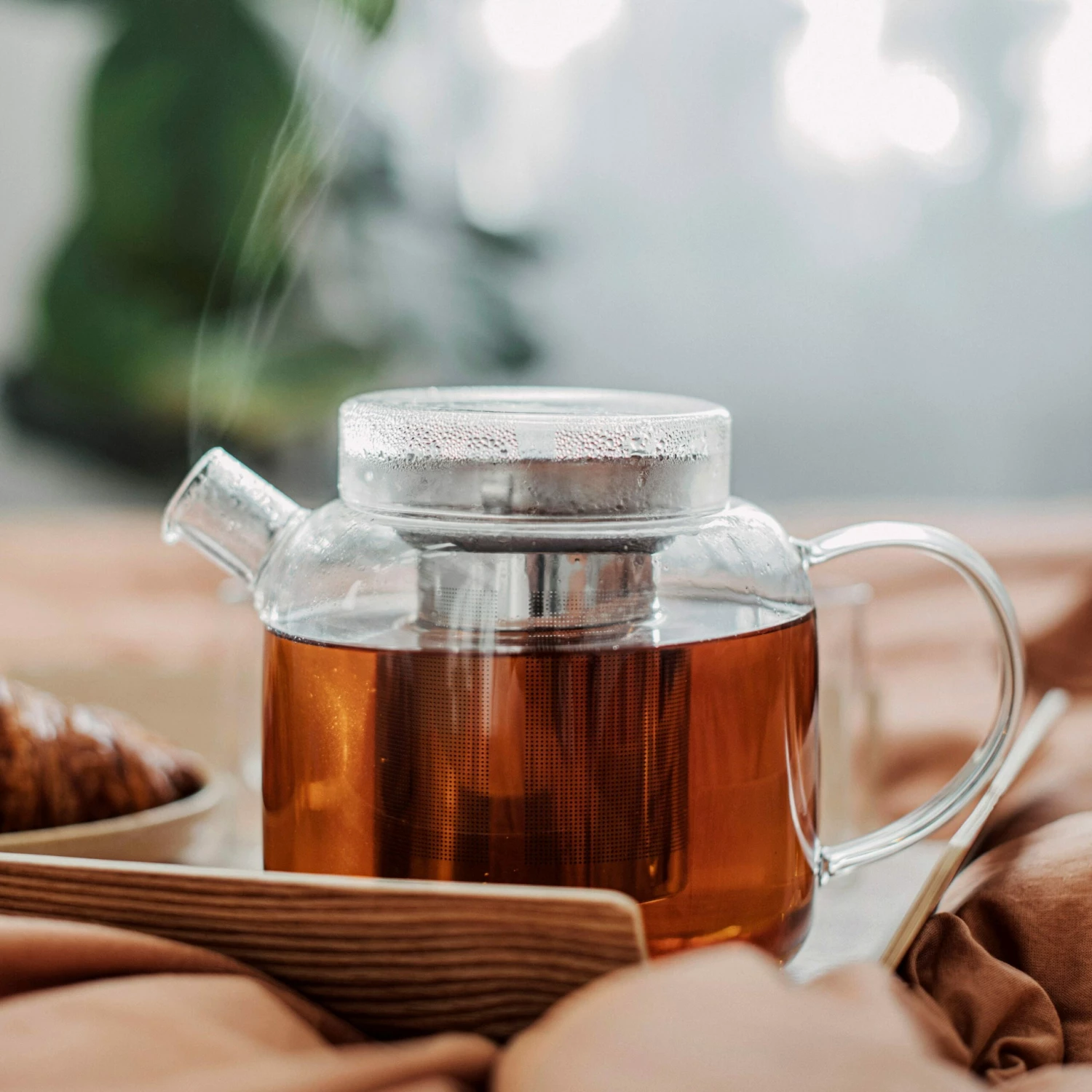 Stilvolle Teekanne aus Glas für alle, die gerne die Farbe ihres Tees sehen! Die Kanne besteht aus haltbarem Borosilikatglas und ist spülmaschinenfest. Nicht für die Mikrowelle geeignet. Sieb aus rostfreiem Stahl.