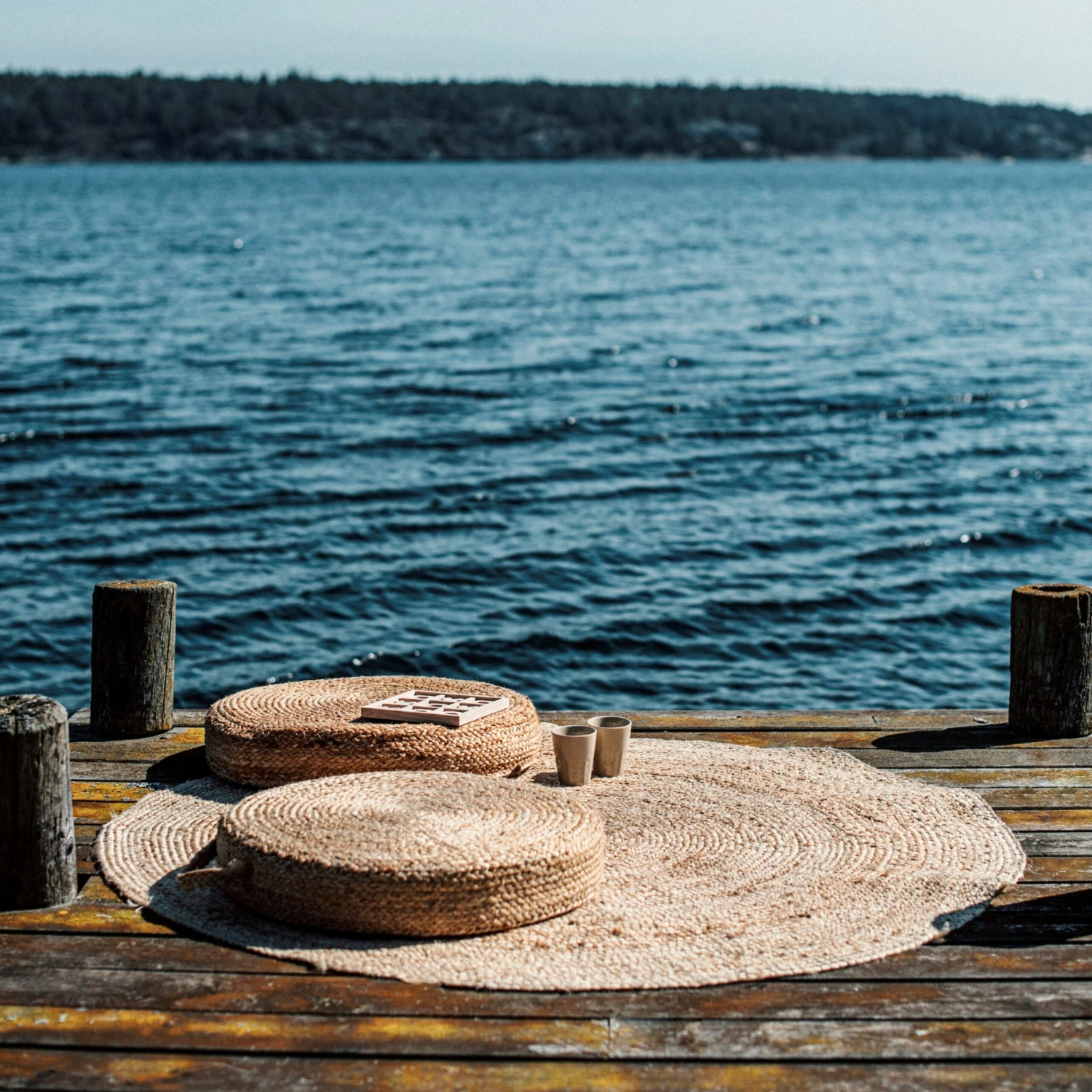 Runder Teppich aus der strapazierfähigen Naturfaser Jute. Auch in einer kleineren Größe erhältlich.