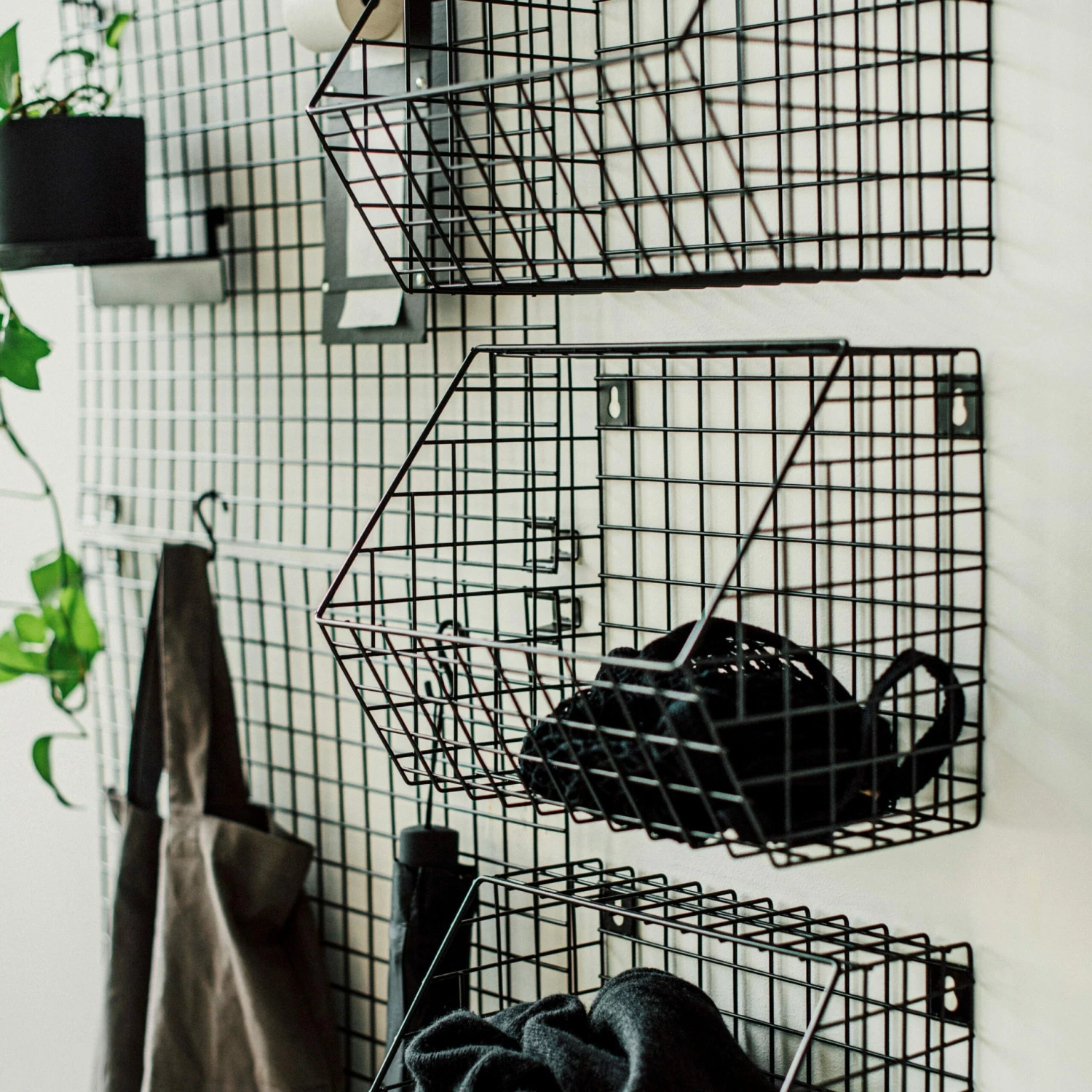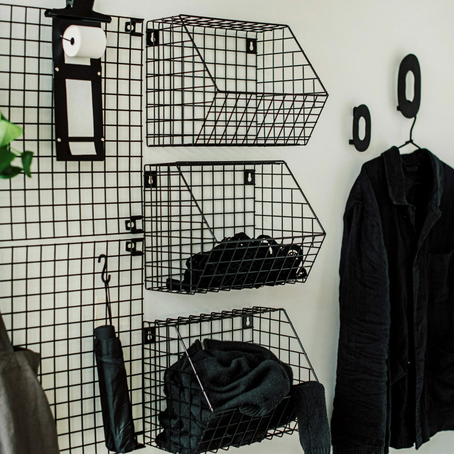Im Flur fürHüte, Schals und andere Accessoires. Ein Korb für jedes Mitglied der Familie. Im Badezimmer können Produkte wie Lotion und Seife darin aufbewahrt werden oder es kann als Ablage für Handtücher füllen verwendet werden. Verwende es als wandmontierten Nachttisch im Schlafzimmer oder montiere ihn im Wohnzimmer und fülle ihn mit Taschenbüchern oder anderen dekorativen Gegenständen. Füge S-Haken und Klammern zur Aufbewahrung und zum Aufhängen hinzu.