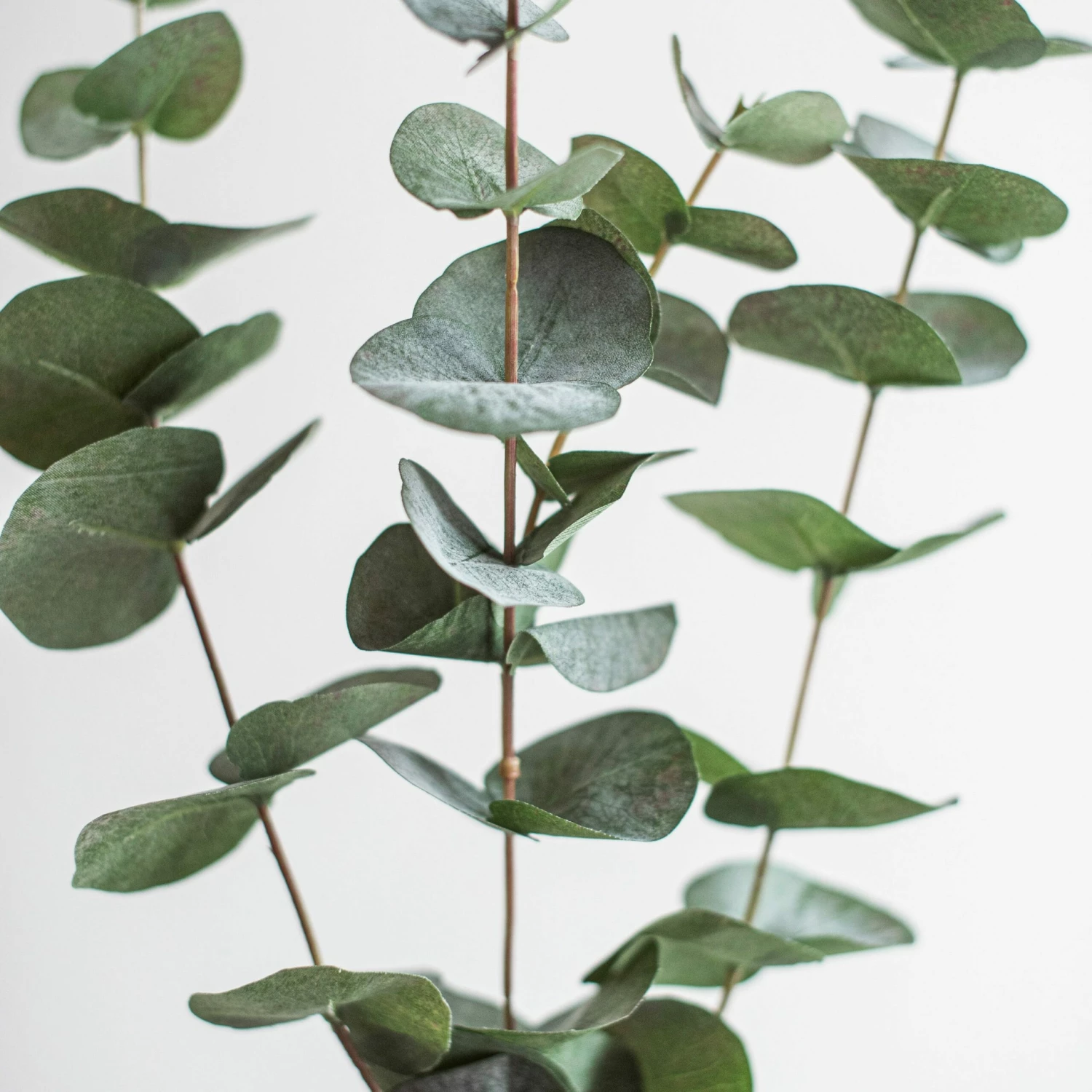 Schaffe einen schönen Wohnkomfort mit Pflanzen, auch wenn du keinen grünen Daumen hast. Natürlich aussehende Kunstpflanze in Form eines Eukalyptuszweigs. Der Zweig ist 60 cm hoch und der Stiel hat einen Kern aus Stahldraht, wodurch er leicht zu formen ist. Du kannst ihn auch auf die gewünschte Länge schneiden. Schön als Einzelpflanze oder in Kombination mit anderen Pflanzen.